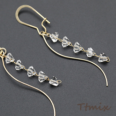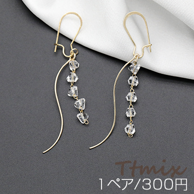 ガラスビーズチェーン×スティックピアス キドニーワイヤー【1ペア】