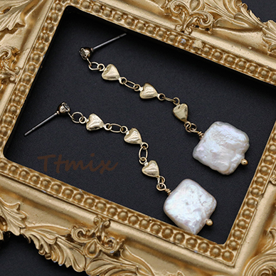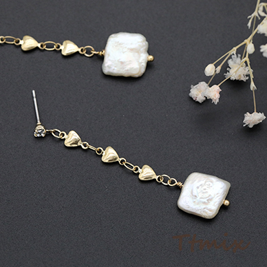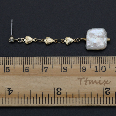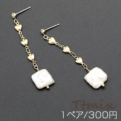 ハートチェーン×淡水パールピアス ストーンポストピアス【1ペア】