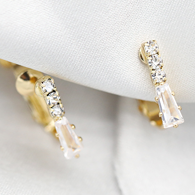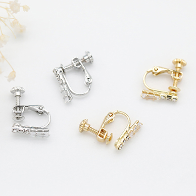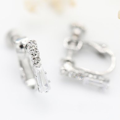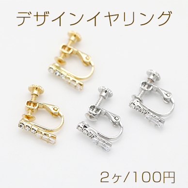 デザインイヤリング ネジバネ式 ストーン付き スティック 3×12mm【2ヶ】