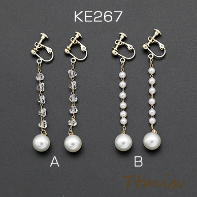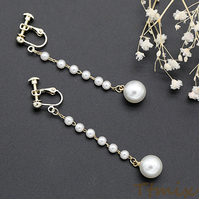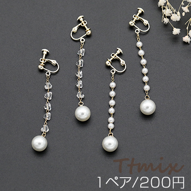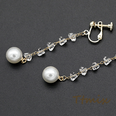 アクリルパール調イヤリング ガラスビーズチェーン/パールチェーン【1ペア】