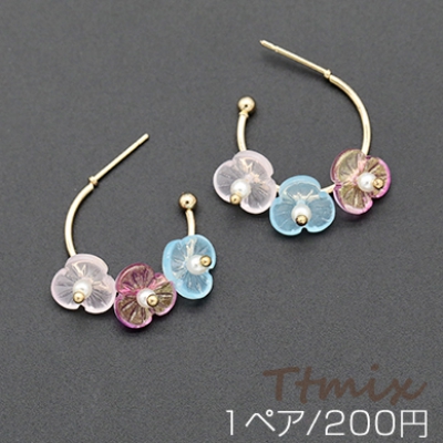 ガラスフラワーピアス ポストピアス フープ ゴールド【1ペア】