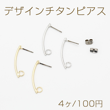 デザインチタンピアス スティック カーブ カン付き 1.5×30mm【4ヶ】