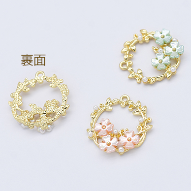 チャームパーツ 花冠 アクリル&パール付き 1カン 23×24mm ゴールド【2ヶ】