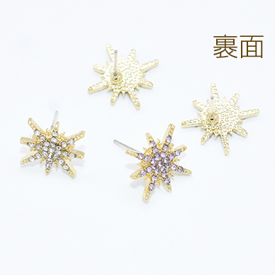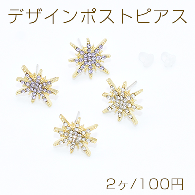 デザインポストピアス フラッシュスター 石付き ゴールド【2ヶ】