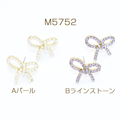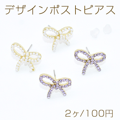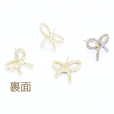 デザインポストピアス リボン パール/石付き ゴールド【2ヶ】