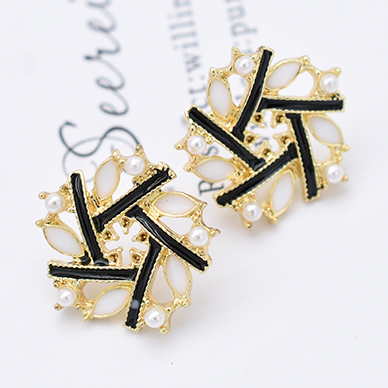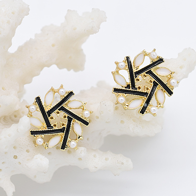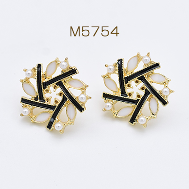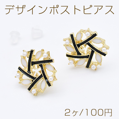 デザインポストピアス 不規則型 エポ&パール付き ゴールド【2ヶ】