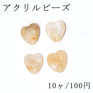 アクリルビーズ ハート 17×18mm カーキ【10ヶ】