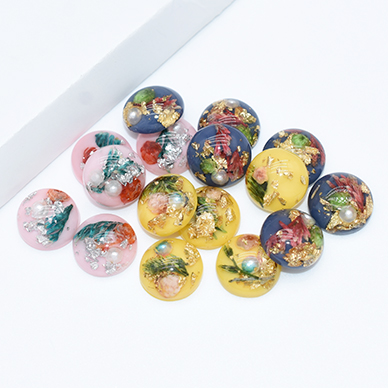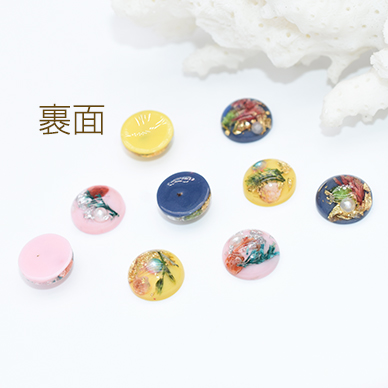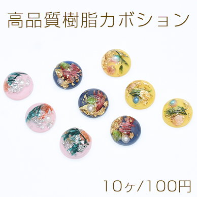 高品質樹脂カボション ドライフラワー&パール封入 半円 12mm【10ヶ】