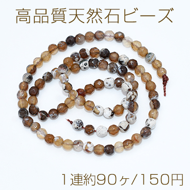 高品質天然石ビーズ 茶縞アゲート ラウンドカット 4mm【1連約90ヶ】