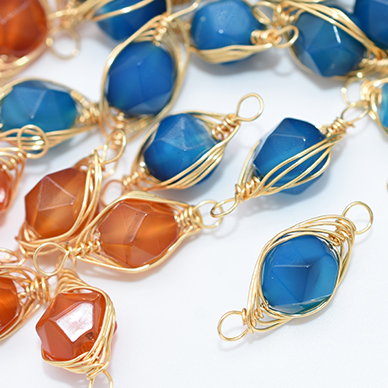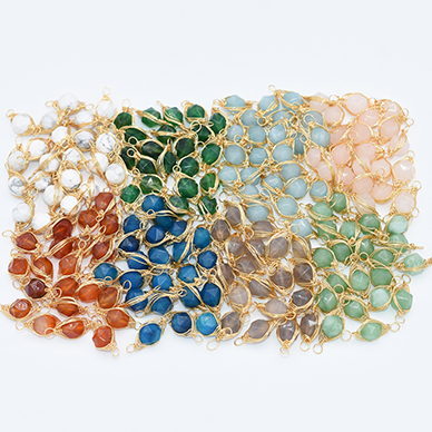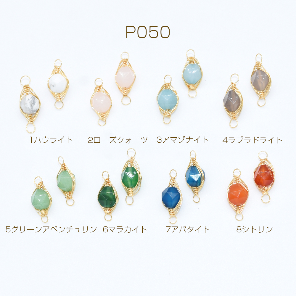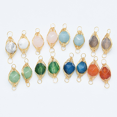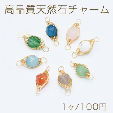 上質ワイヤーラッピング天然石チャーム コネクターパーツ 接続パーツ 連結パーツ ラウンドカット 2カン 8×21mm(1ヶ)