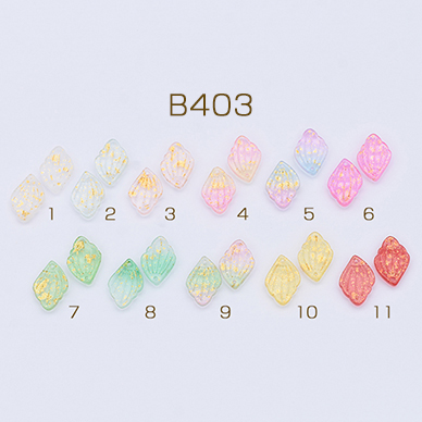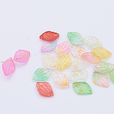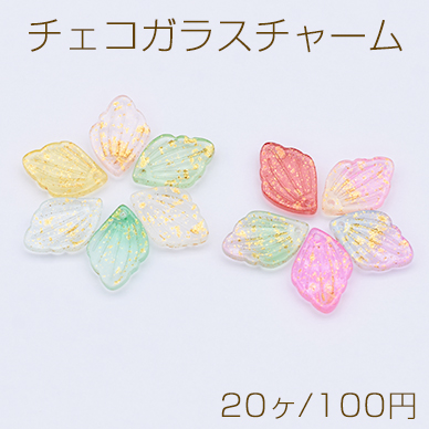 チェコガラスチャーム ゴールド 箔入り 花びら 1穴 12×18mm 全11色