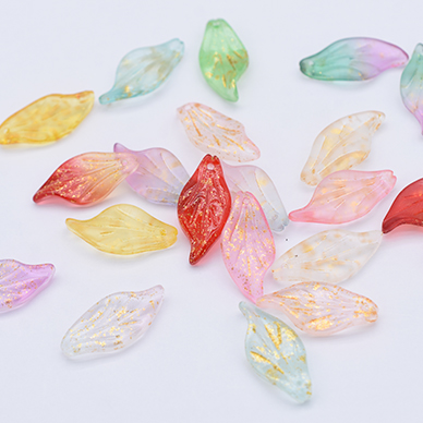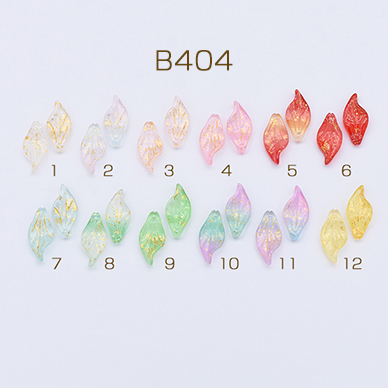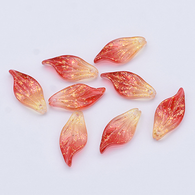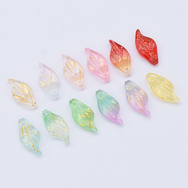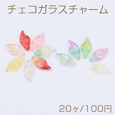 チェコガラスチャーム ゴールド 箔入り 花びら 1穴 10×21mm 全12色