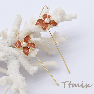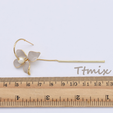 エポフラワー×パール×チェーン×スティックピアス【1ペア】