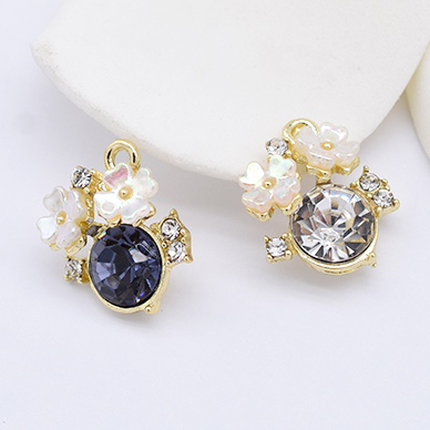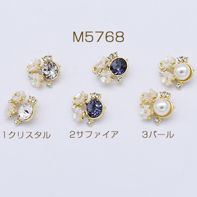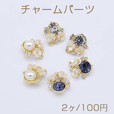 チャームパーツ デザイン アクリルフラワー&石付き 1カン 15×17mm【2ヶ】