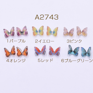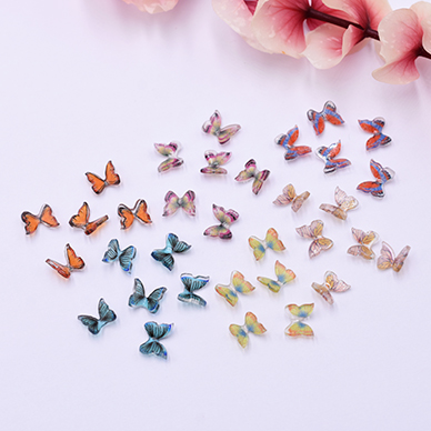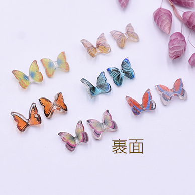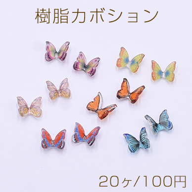 ジェルネイルパーツ 蝶 バタフライ 樹脂製 デコパーツ 貼り付けパーツ グラデーションカラー 7×8mm(20ヶ)
