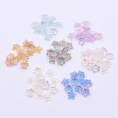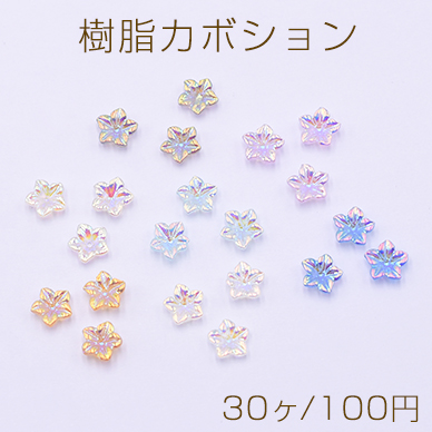 ジェルネイルパーツ フラワー 花型 樹脂製 デコパーツ 貼り付けパーツ オーロラカラー 6.5mm(30ヶ)