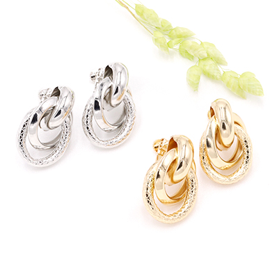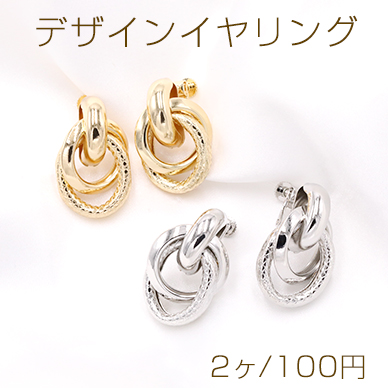 デザインイヤリング ネジバネ式 2連リングA 19×30mm【2ヶ】