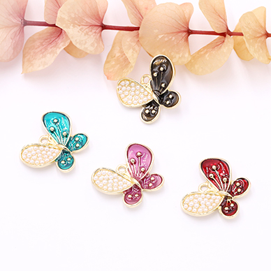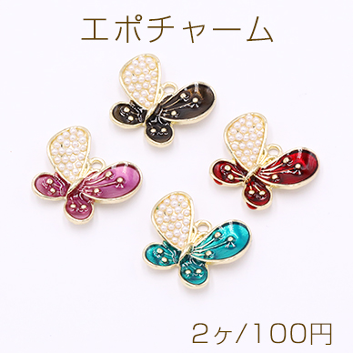 エポチャーム パール付き 蝶 1カン 17×20mm ゴールド【2ヶ】