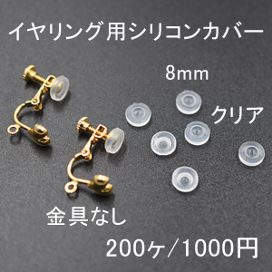 バネ式イヤリング用シリコンカバーNo.3 クリア 8mm 100ペア(200個入)【金具なし】
