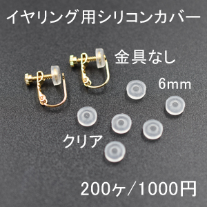 バネ式イヤリング用シリコンカバーNo.3 クリア 6mm 100ペア(200個入)【金具なし】
