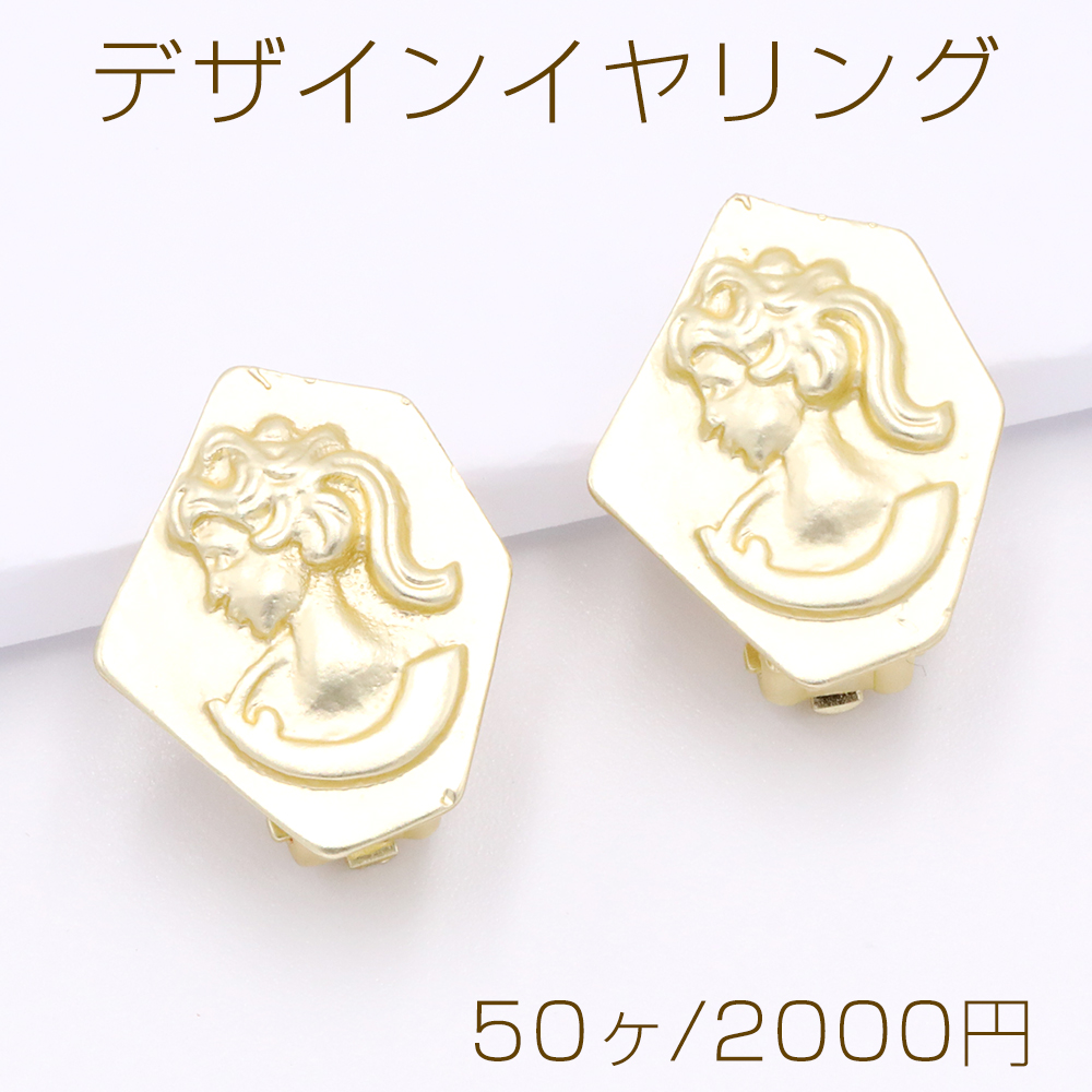 デザインイヤリング 蝶バネ 変形六角形 カメオ 16×20mm【50ヶ】