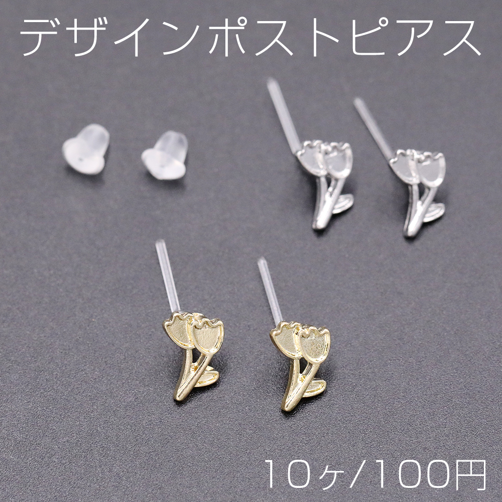 デザインポストピアス 樹脂 ミール皿 ローズ 6×9mm【10ヶ】
