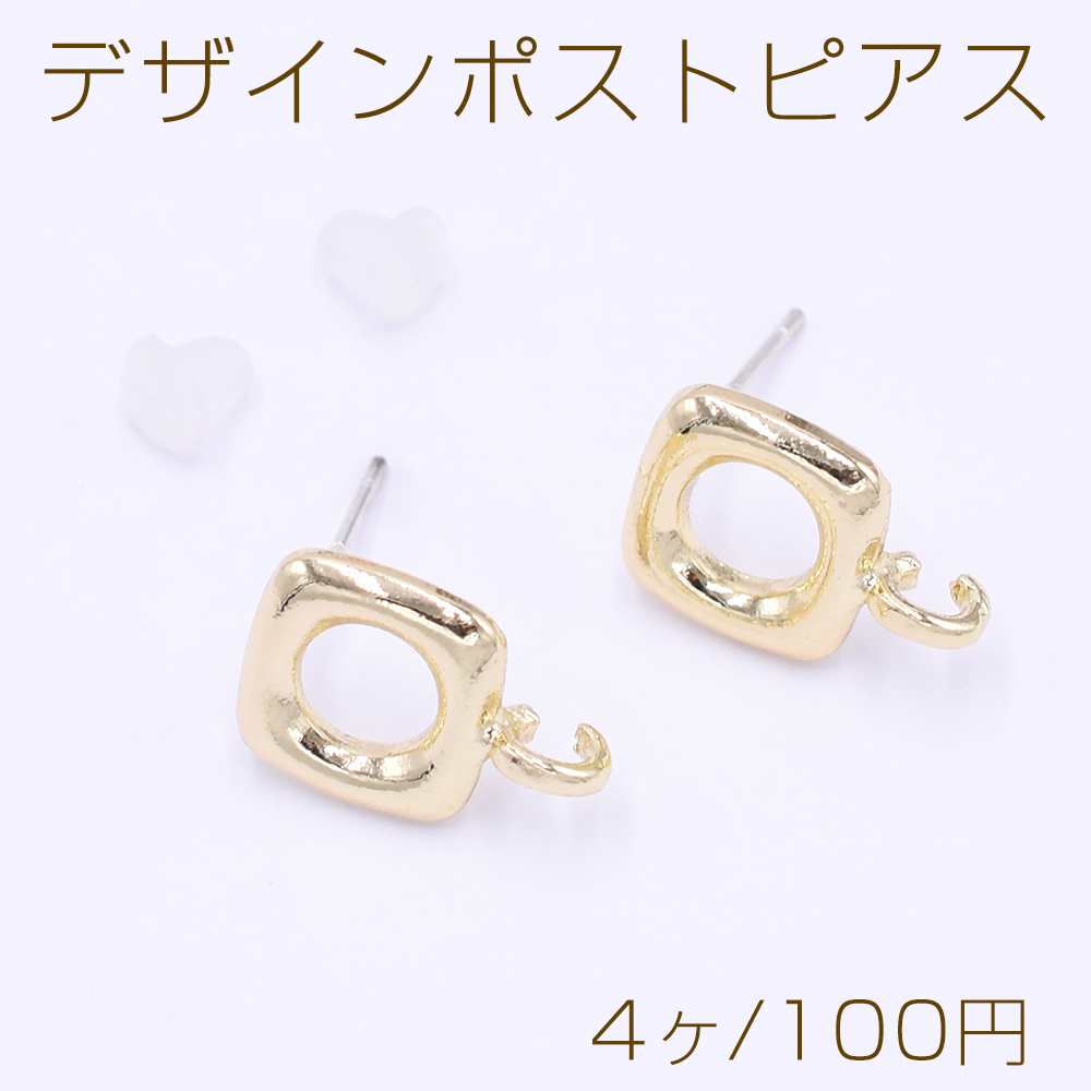 デザインポストピアス 正方形フレーム 1カン 10×14mm ゴールド【4ヶ】