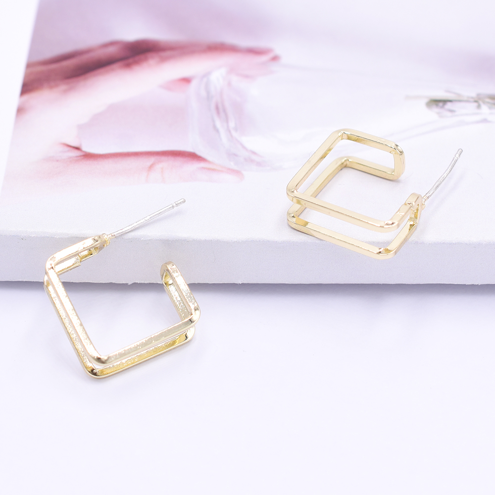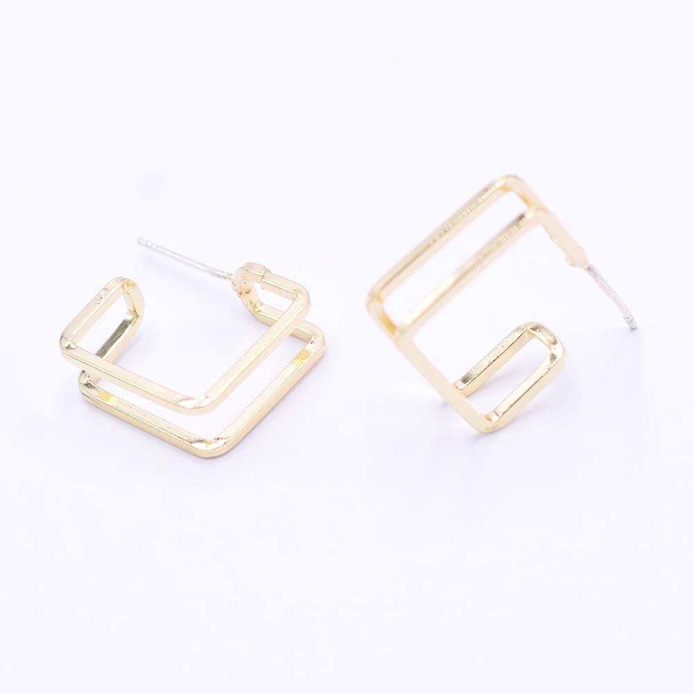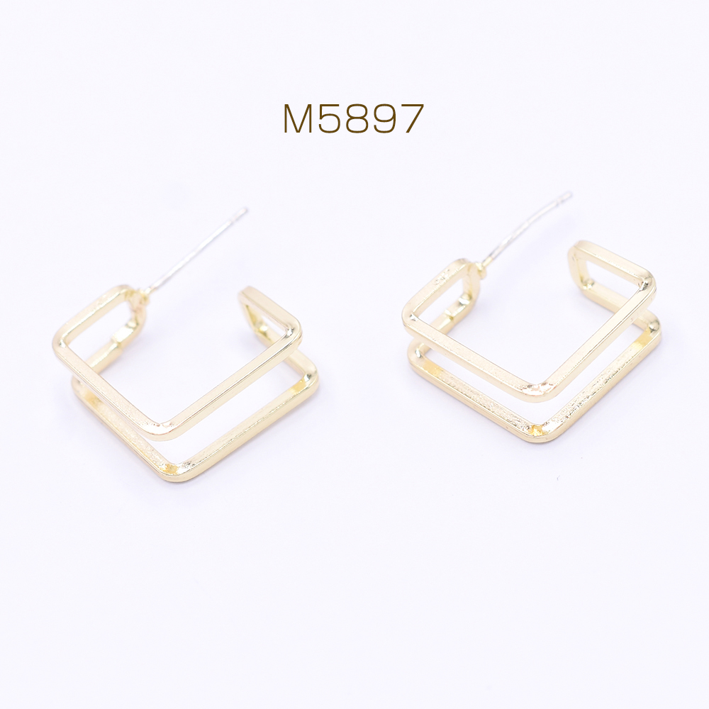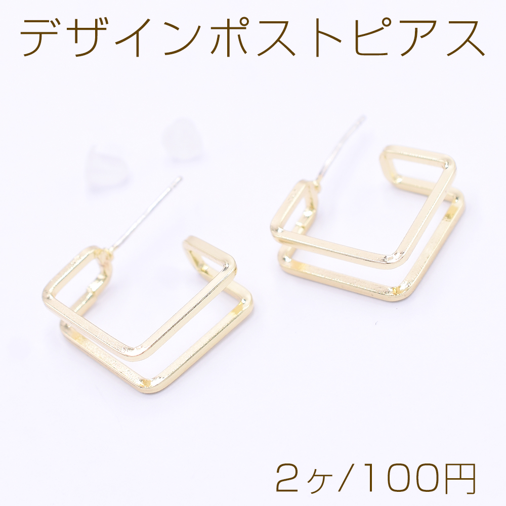 デザインポストピアス 立体 四角形 6×16×16mm ゴールド【2ヶ】