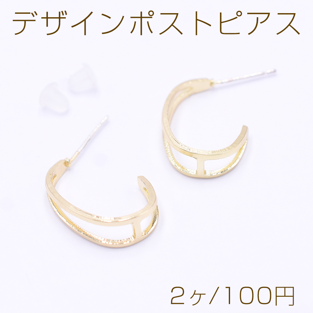 デザインポストピアス 立体 フープ 13×20mm ゴールド【2ヶ】