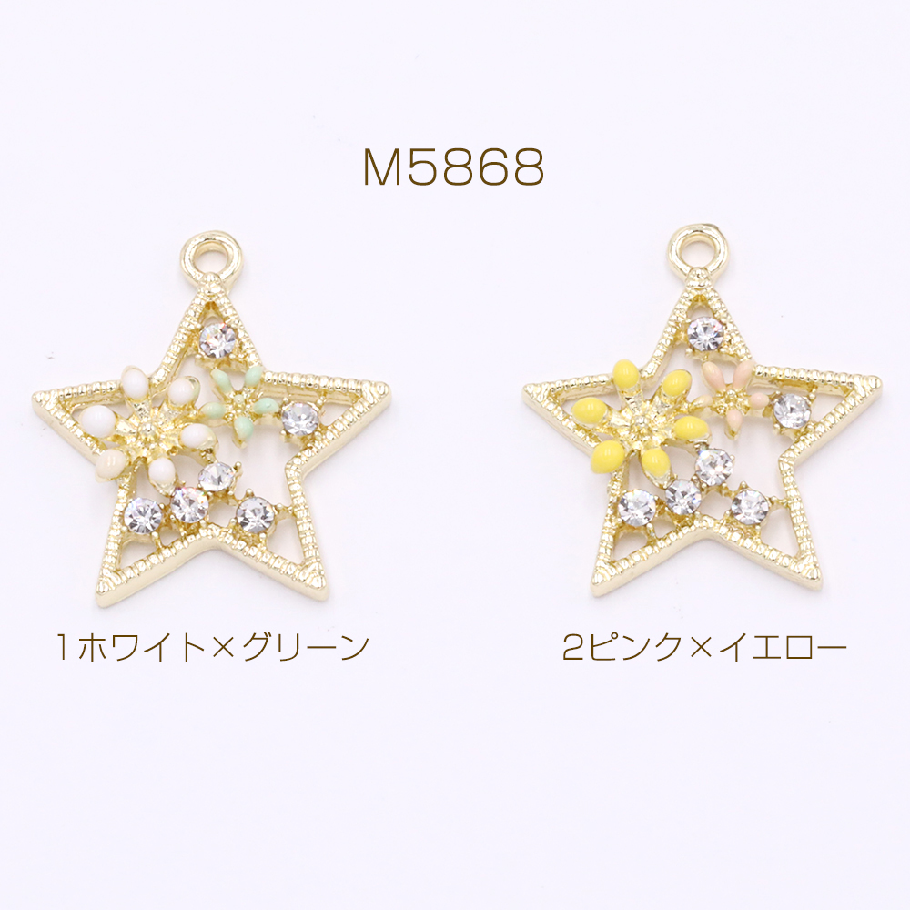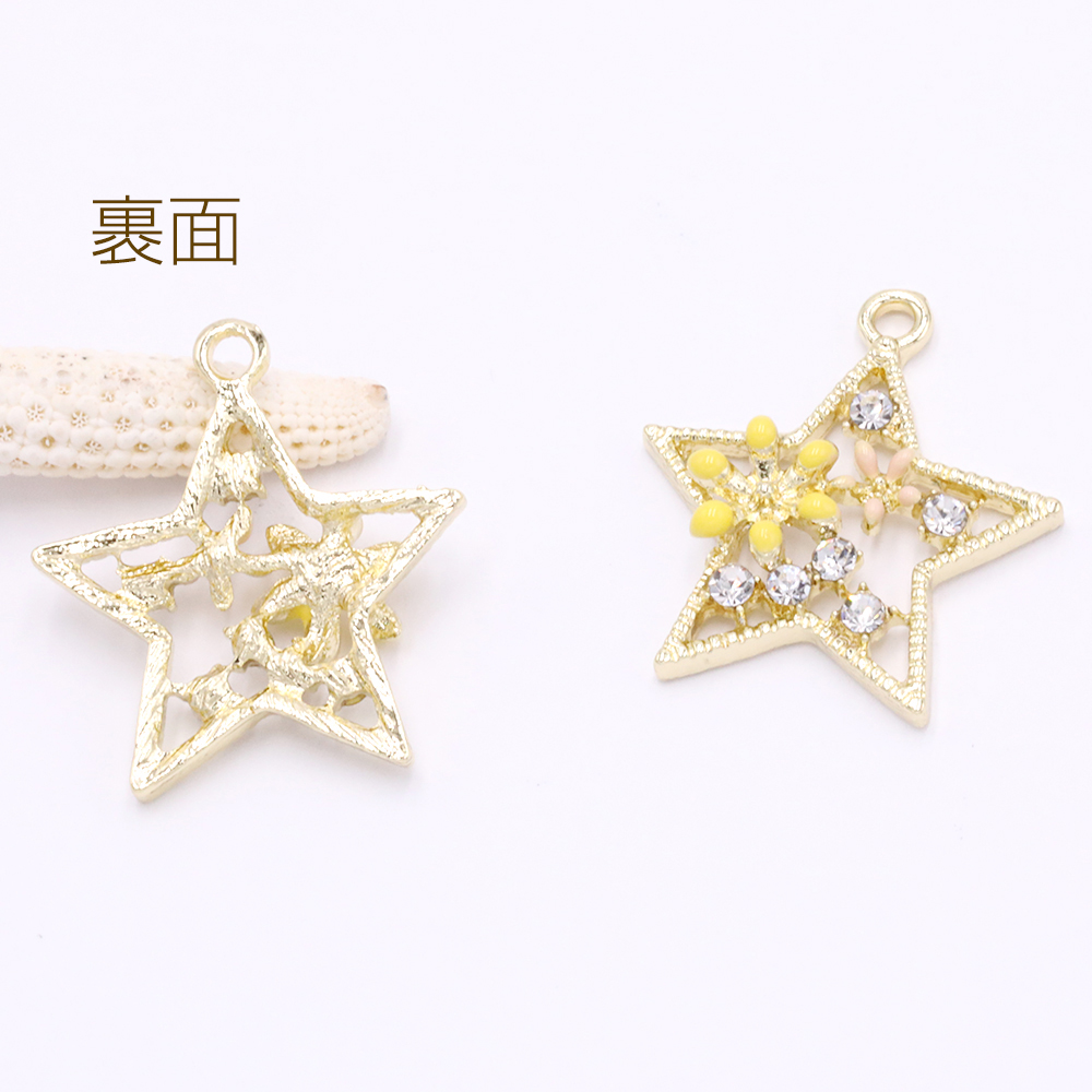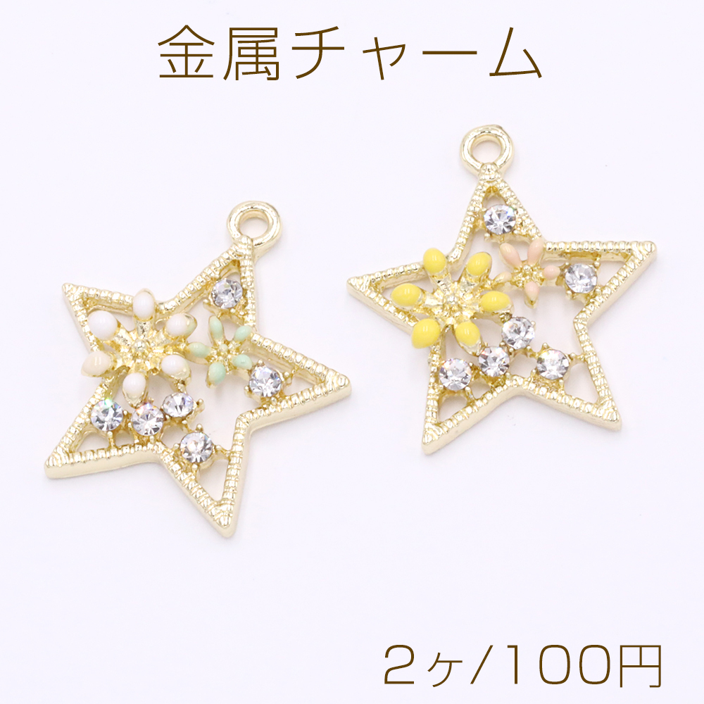 金属チャーム 星型 エポフラワー&石付き 1カン ゴールド【2ヶ】