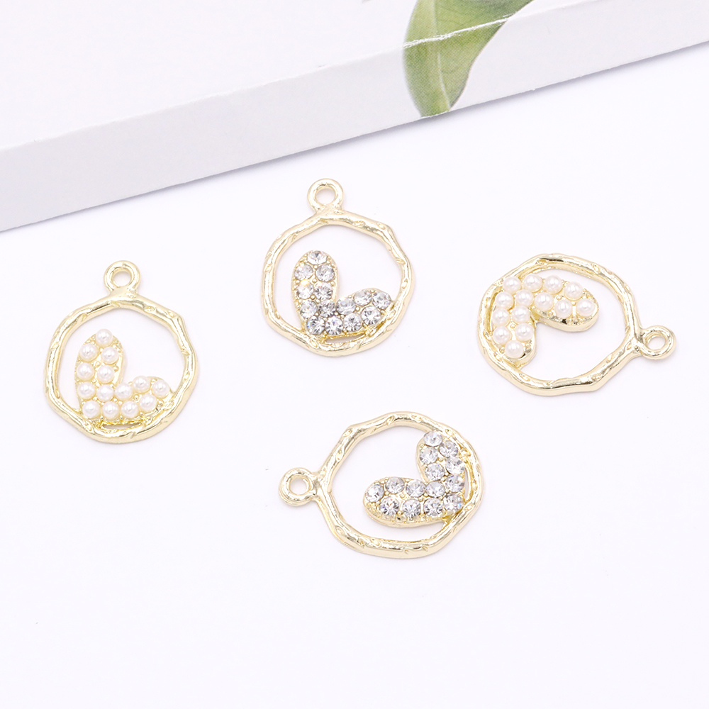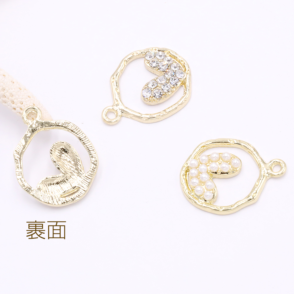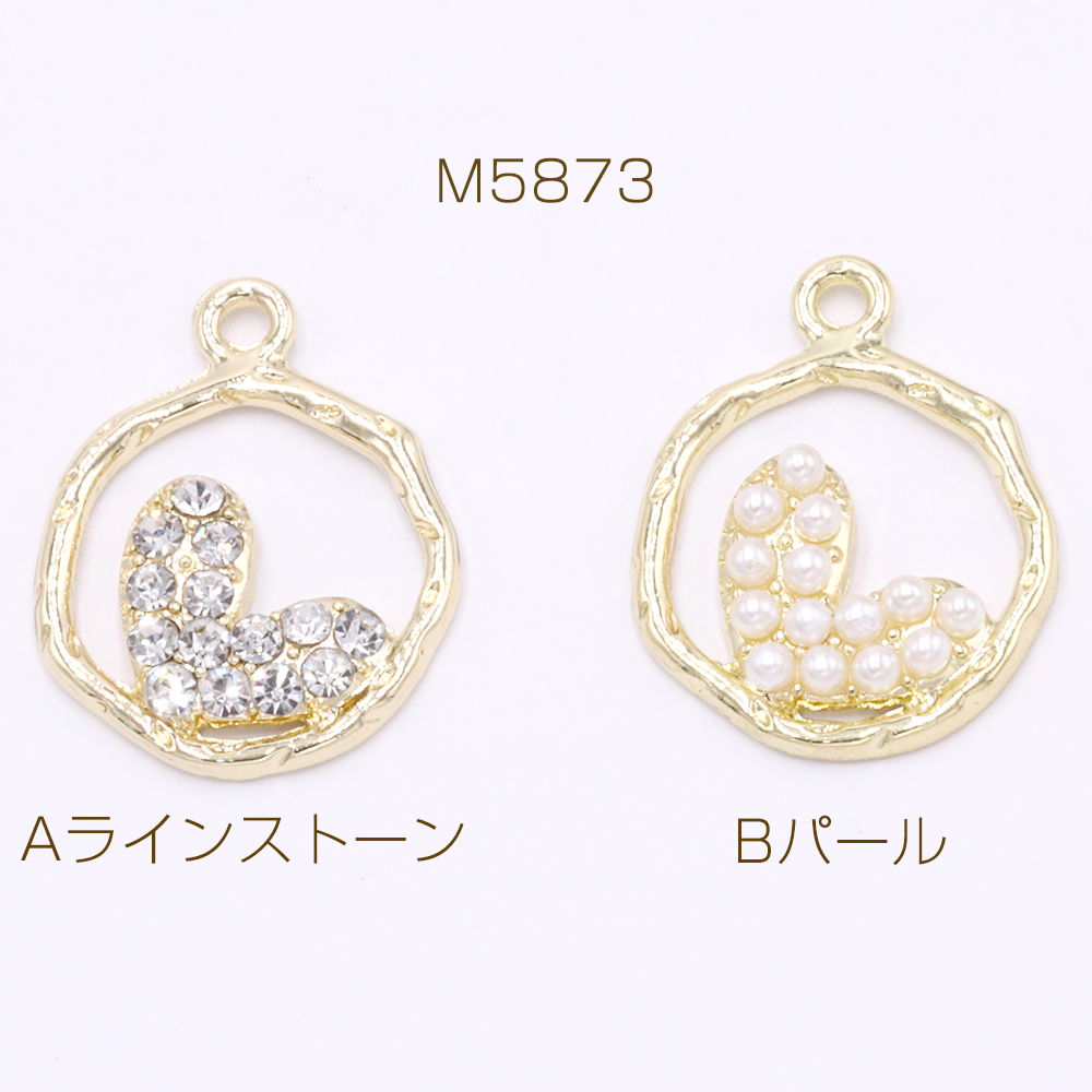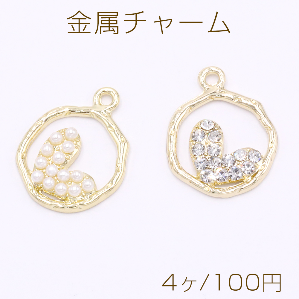 金属チャーム サークル ハート付き 1カン 17×22mm ゴールド【4ヶ】