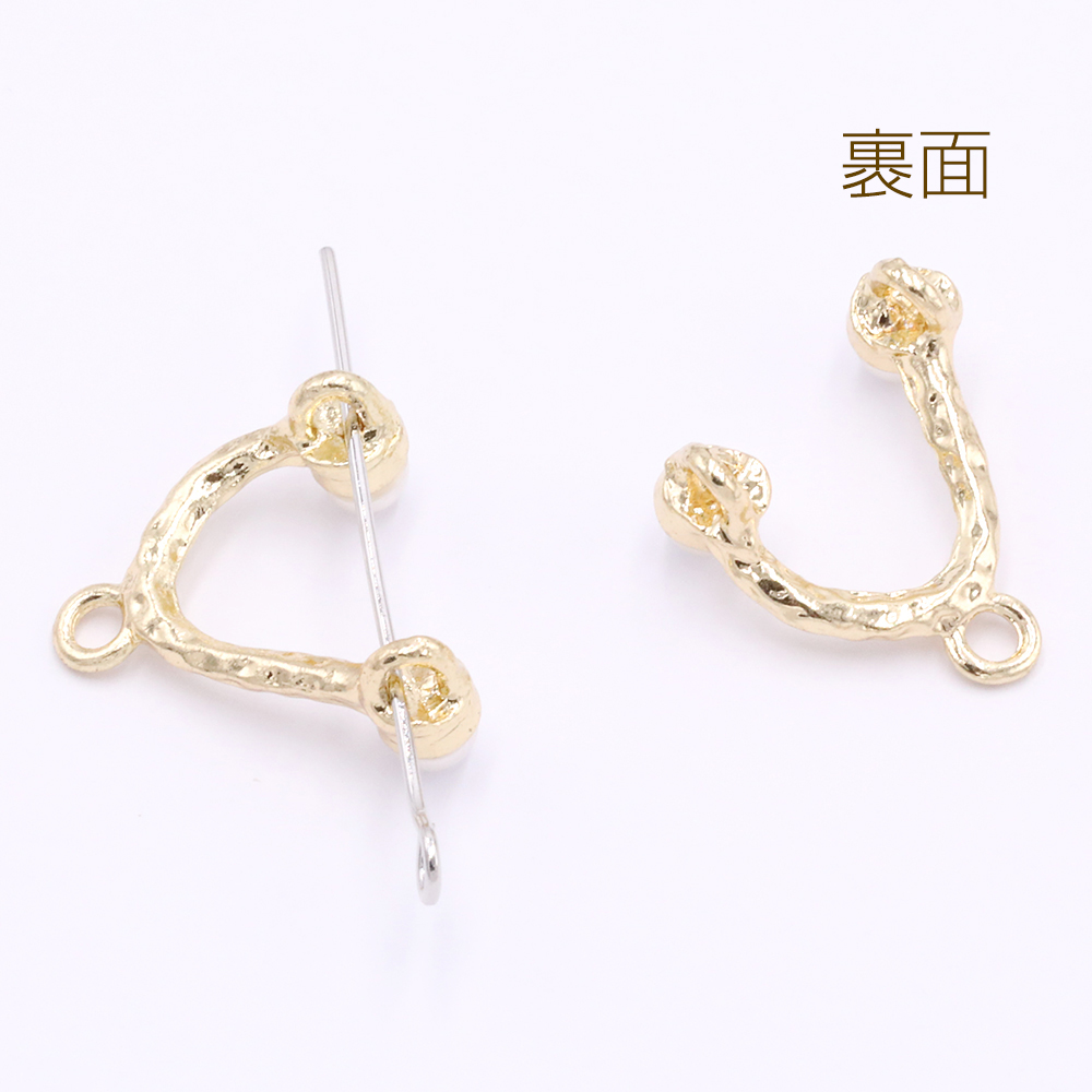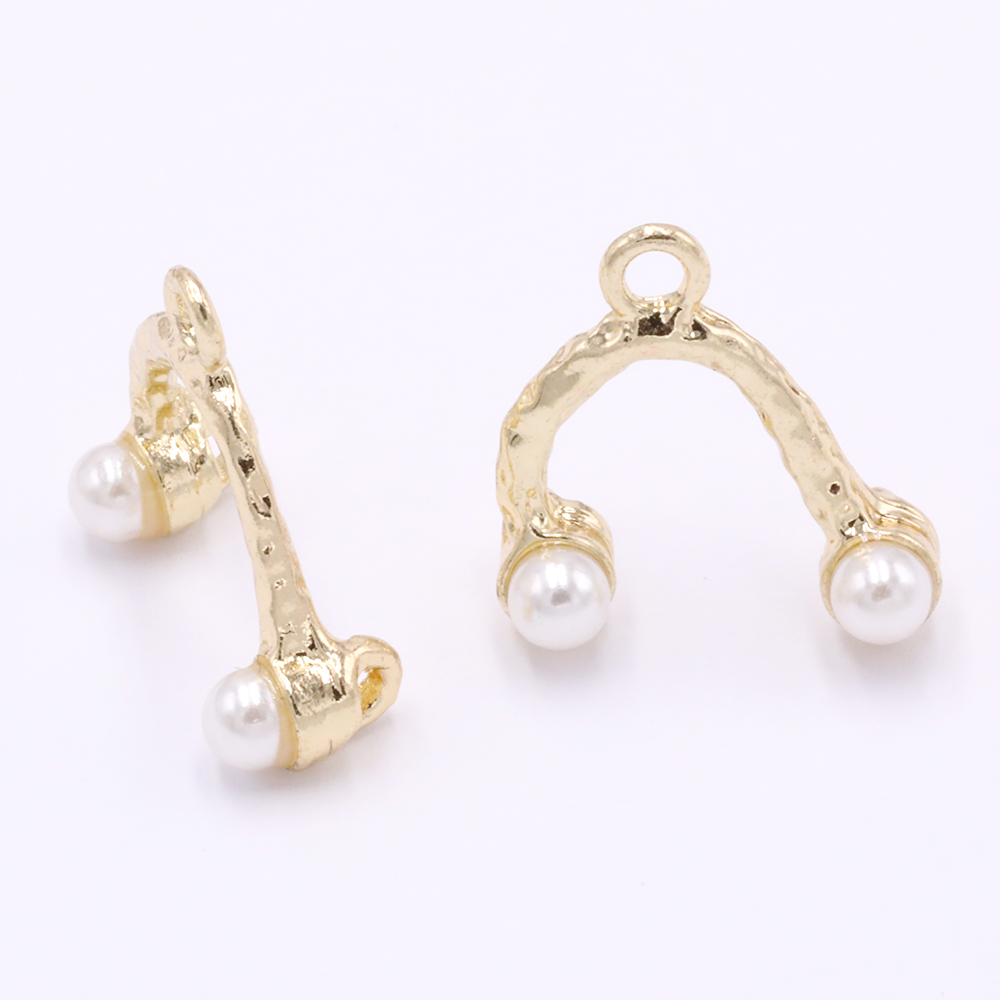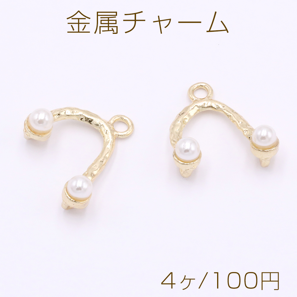 金属チャーム U字型 パール付き 3カン 17×18mm ゴールド【4ヶ】
