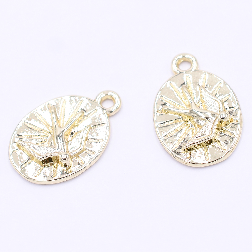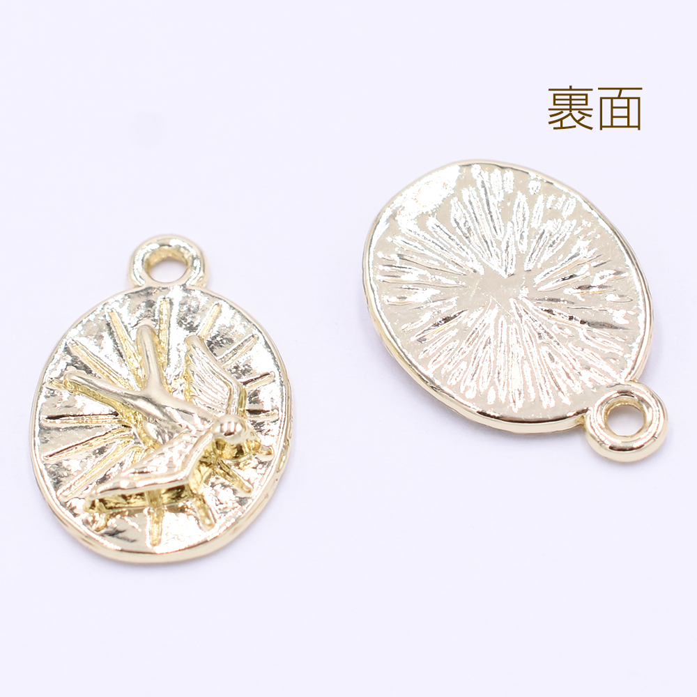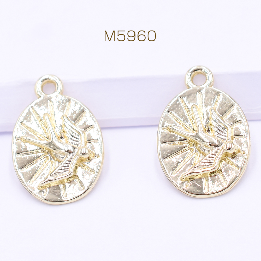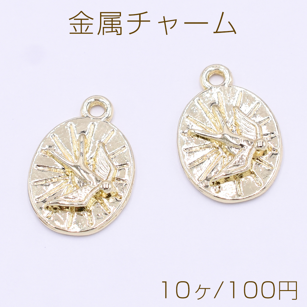 金属チャーム オーバルプレート ツバメ付き 1カン 12×18mm ゴールド【10ヶ】