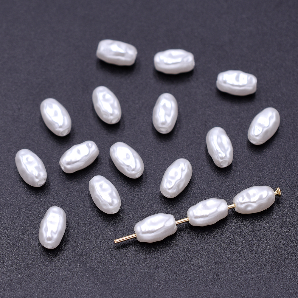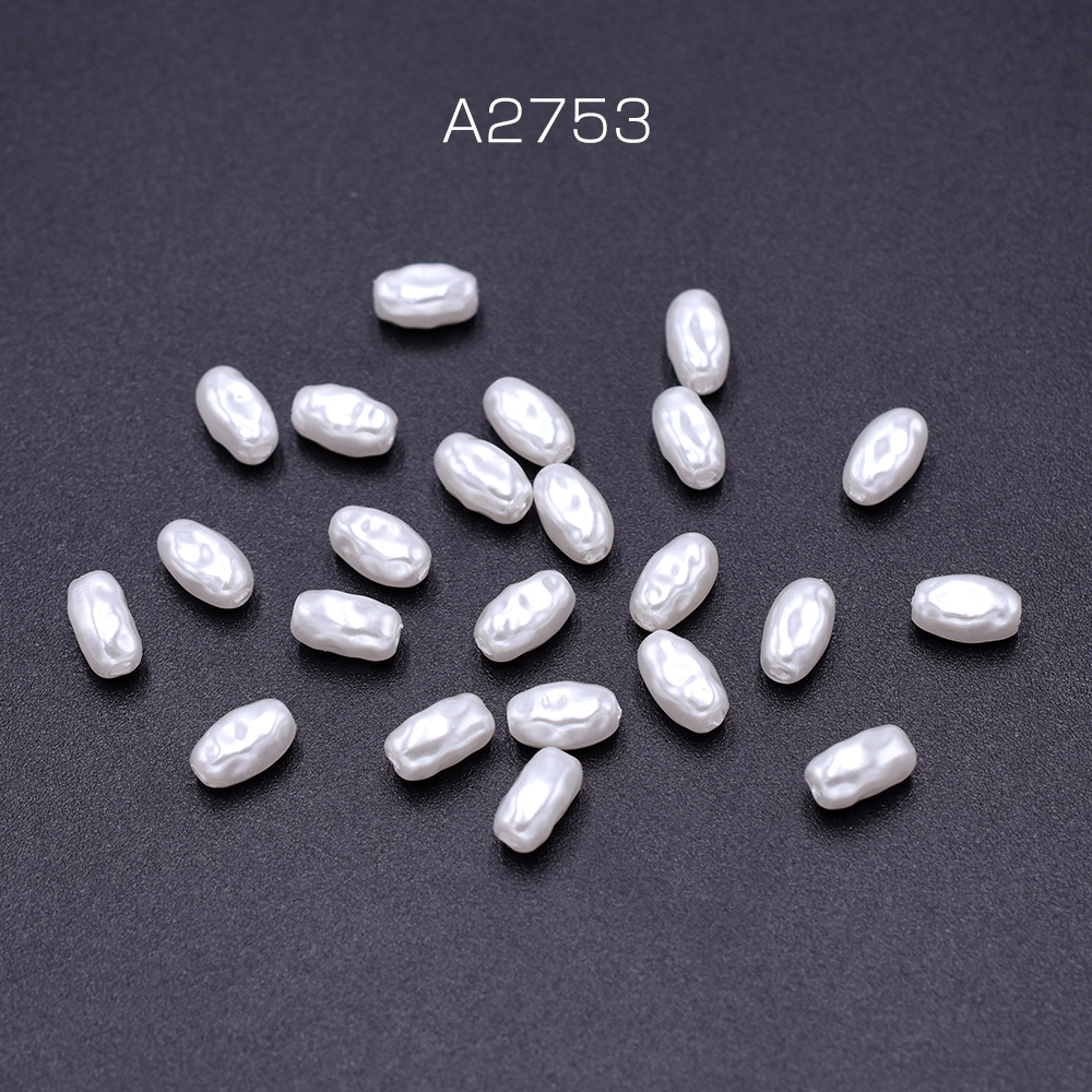 パールビーズ ABS樹脂製 バロック調パールビーズ 不規則型楕円 縦穴 4×7mm ホワイト(10ヶ)
