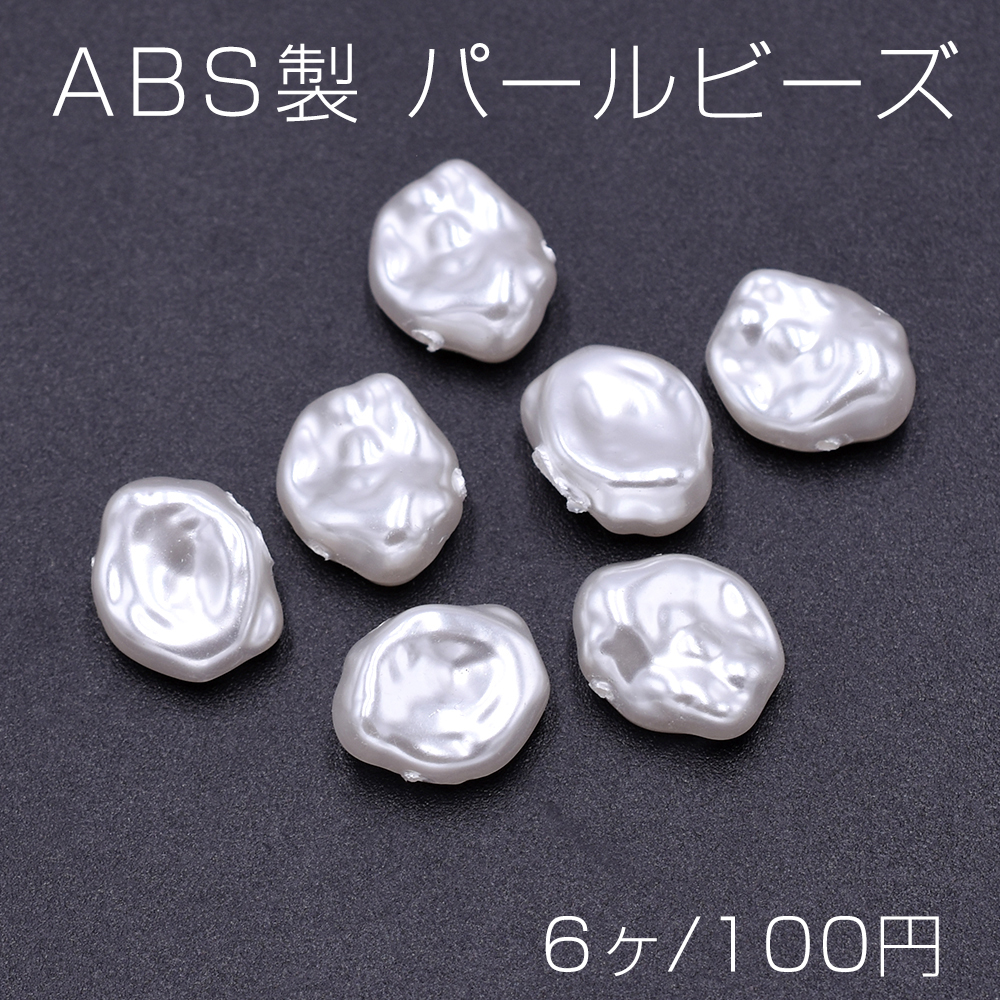 ABS製 パールビーズ 不規則型 10×13mm ホワイト【6ヶ】