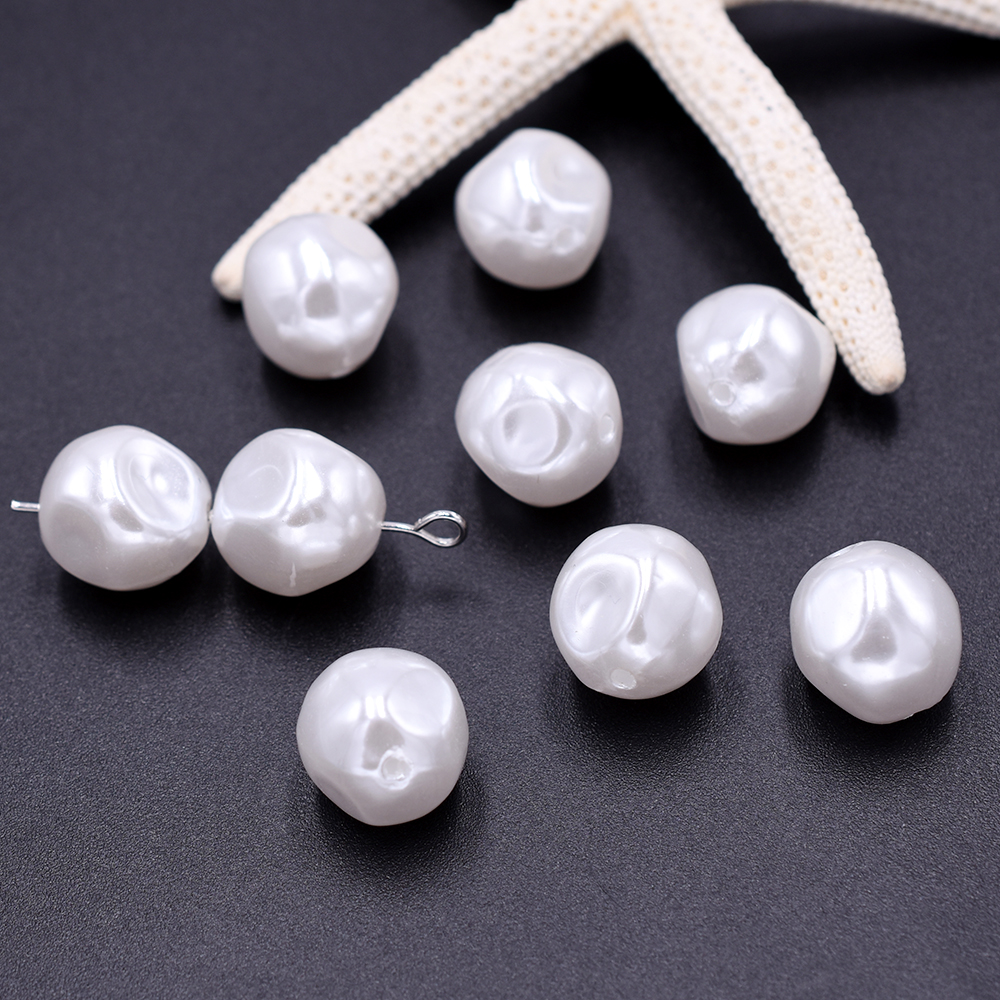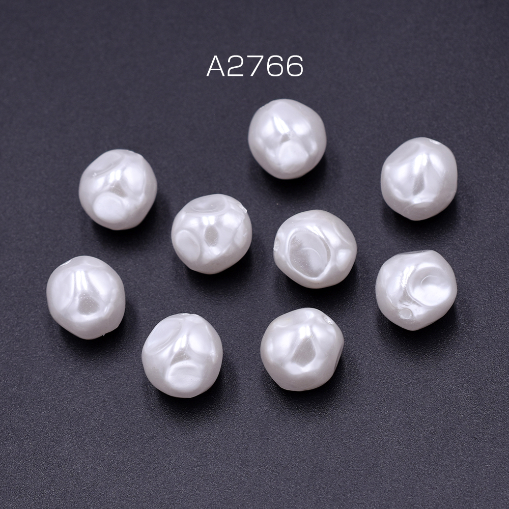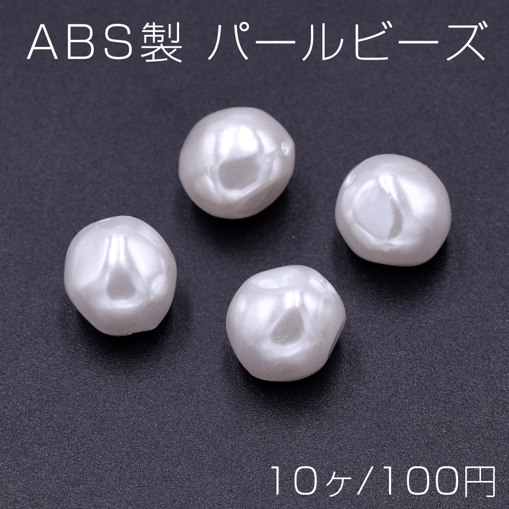 パールビーズ ABS樹脂製 バロック調パールビーズ 不規則型ラウンド 縦穴 12×13mm ホワイト(10ヶ)