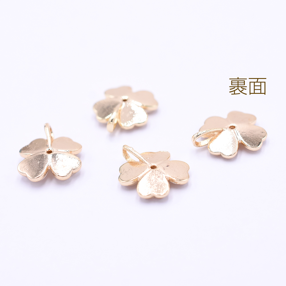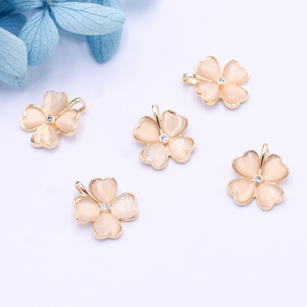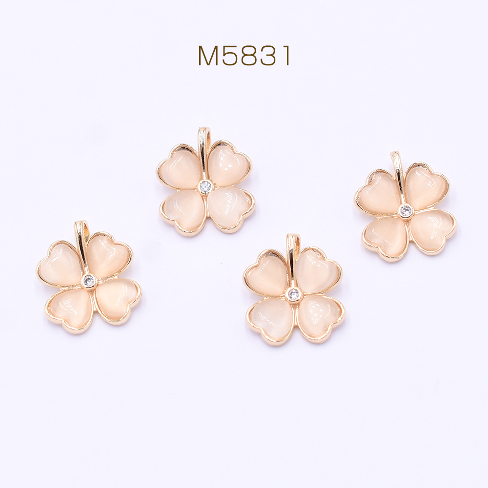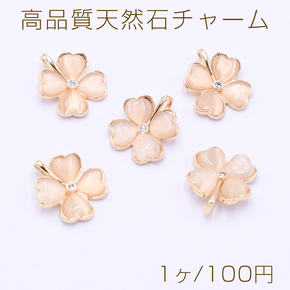 高品質天然石チャーム キャッツアイ ジルコニア付クローバー 1カン 12×15mm ゴールド【1ヶ】