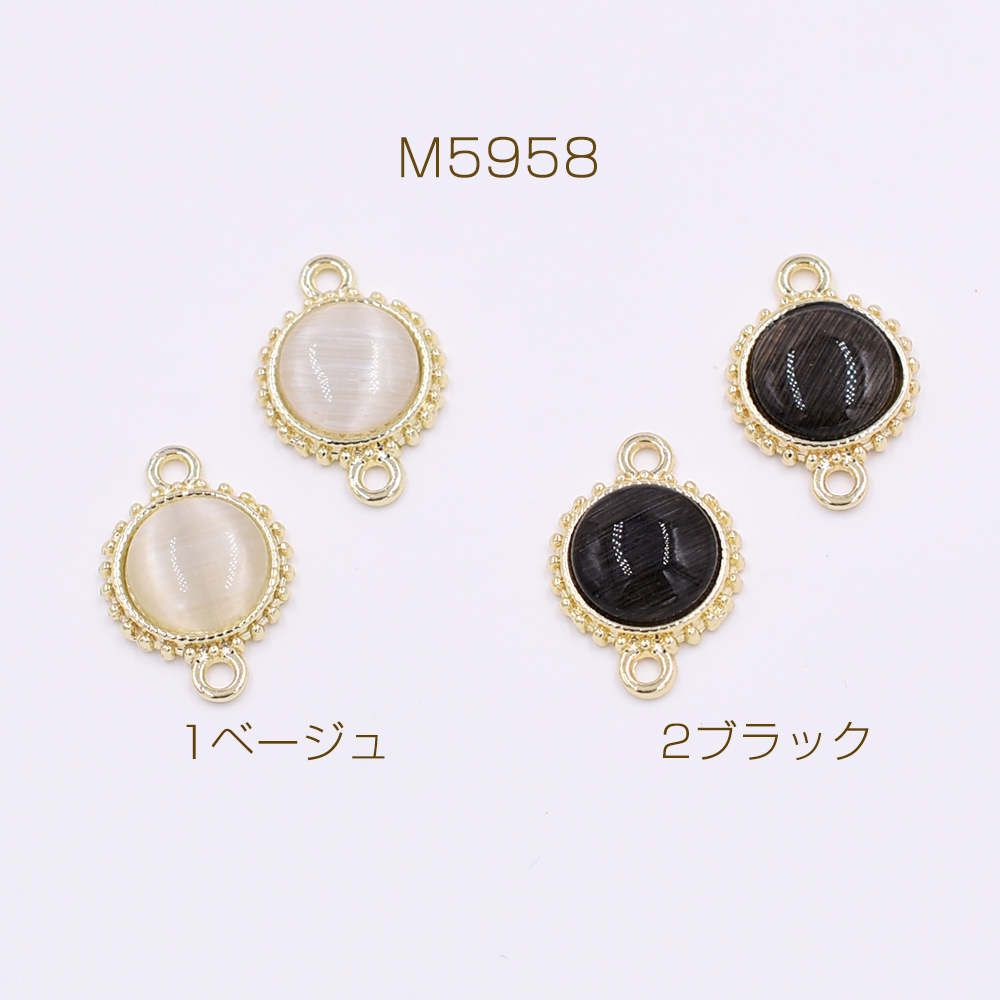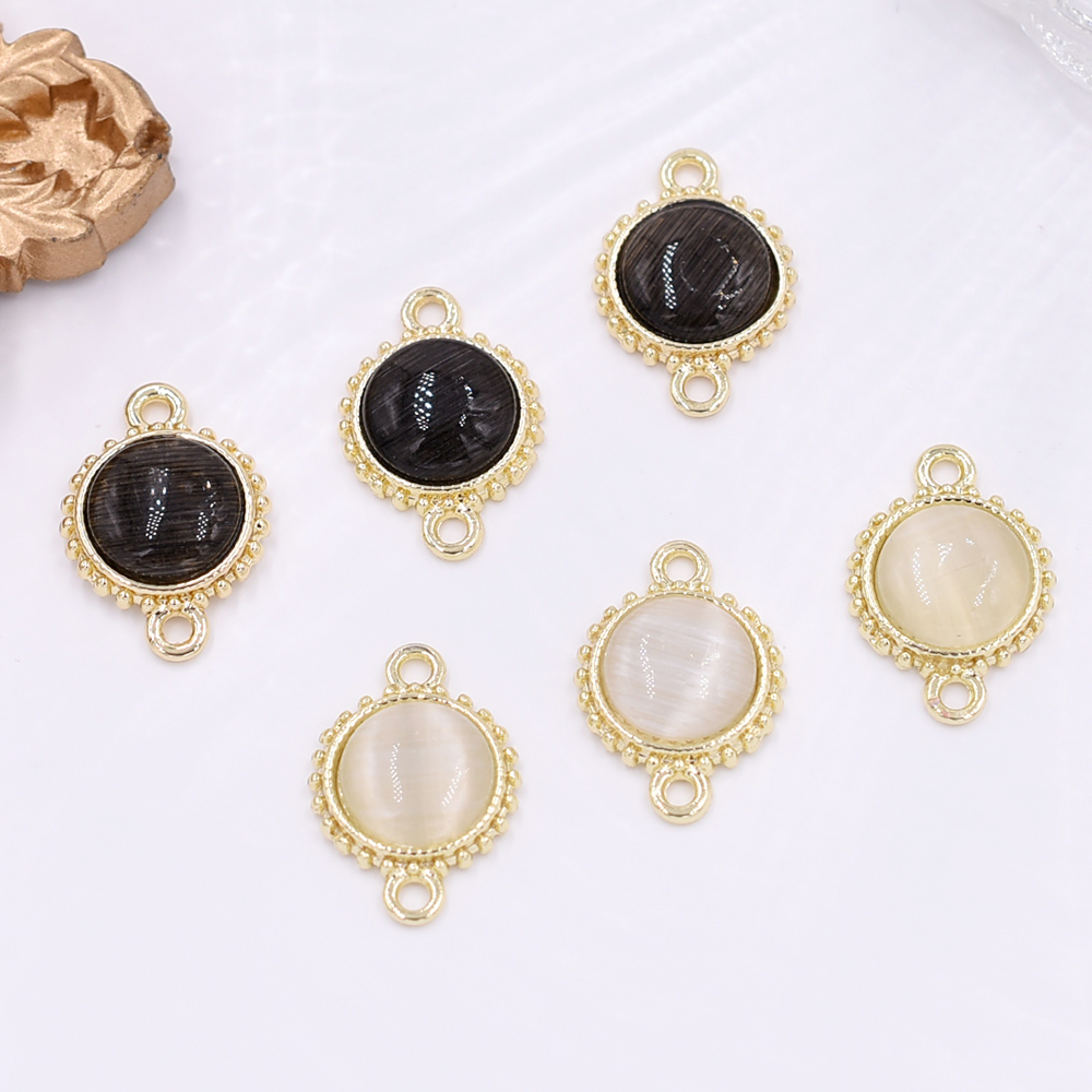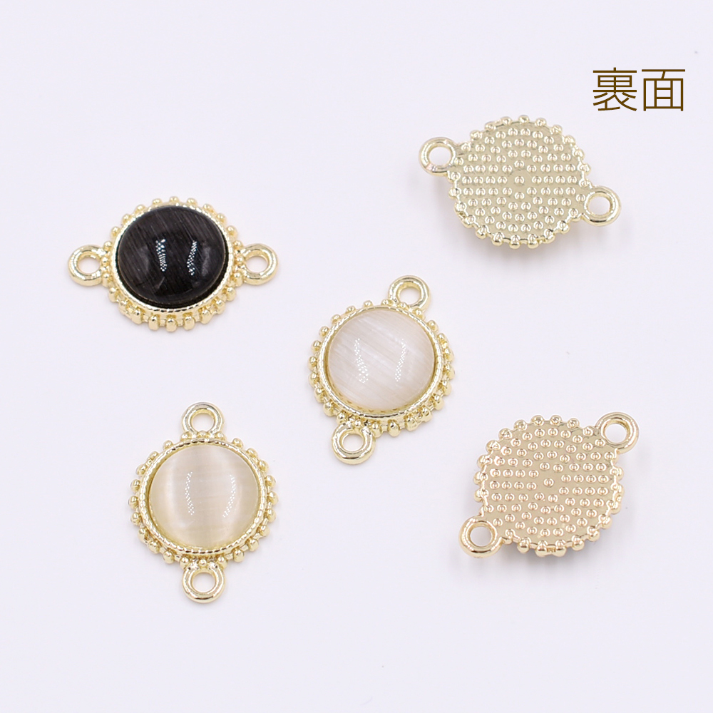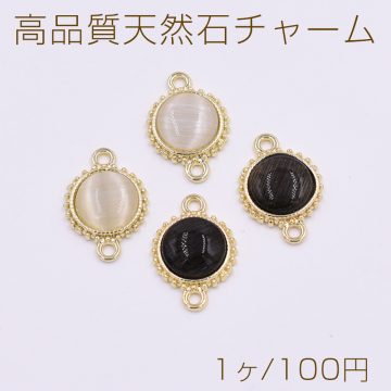 高品質天然石チャーム キャッツアイ 丸型 2カン 11×16mm ゴールド【1ヶ】