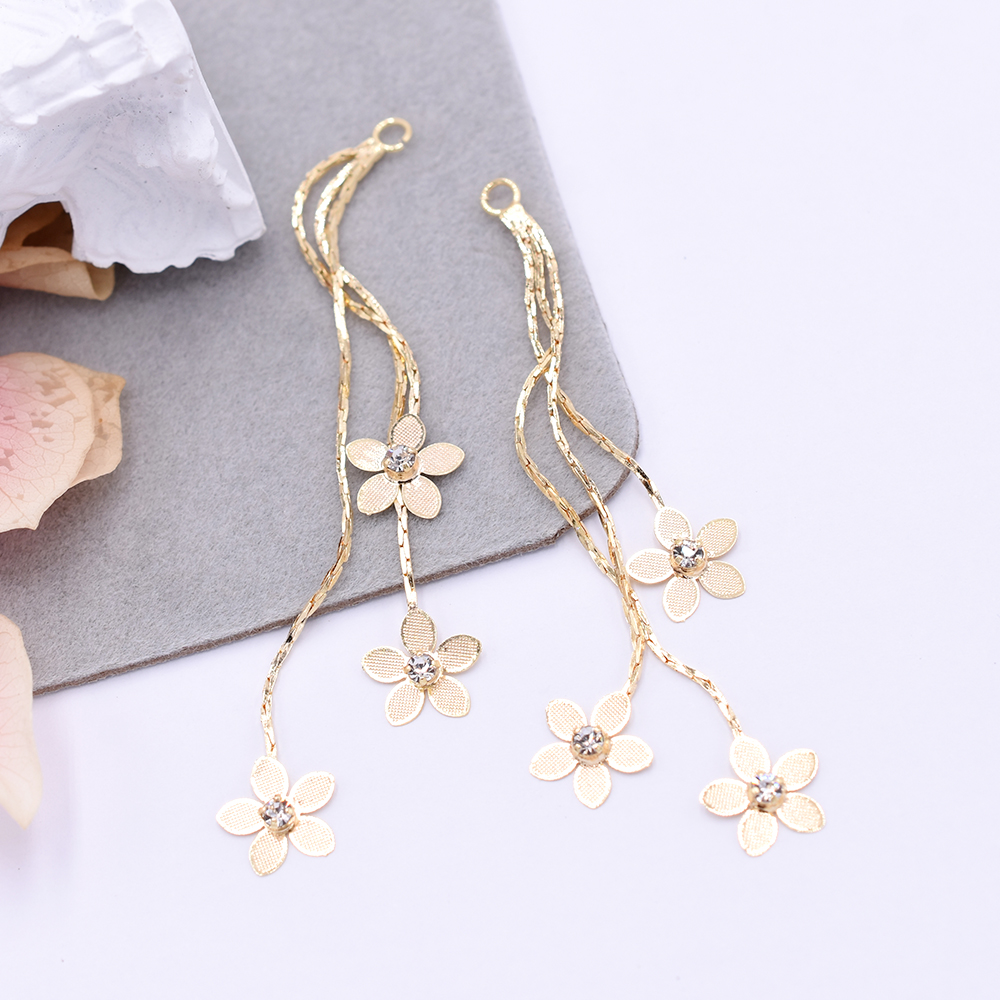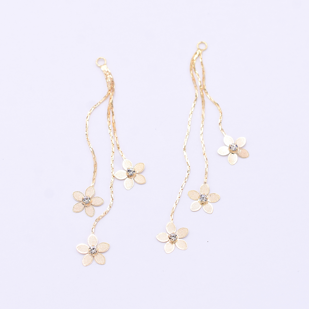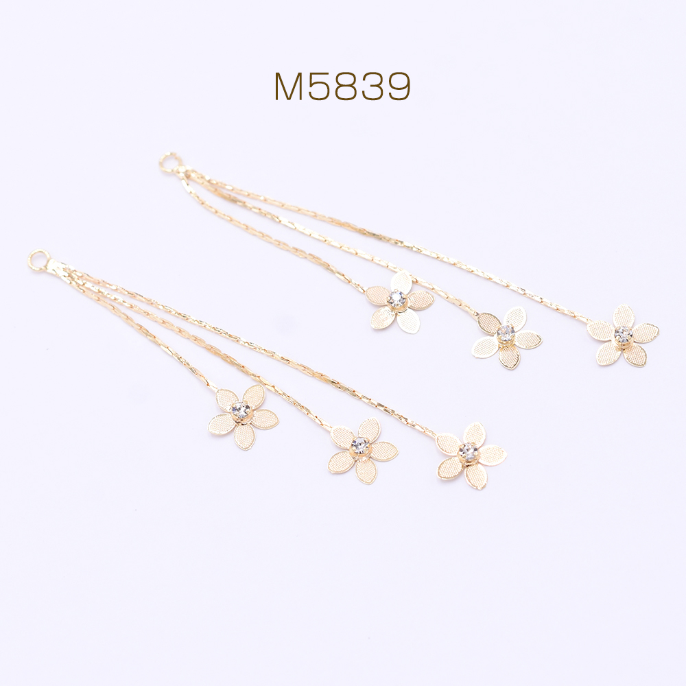 高品質チェーンチャーム ストーン付き フラワー 1カン 77mm ゴールド【1ヶ】