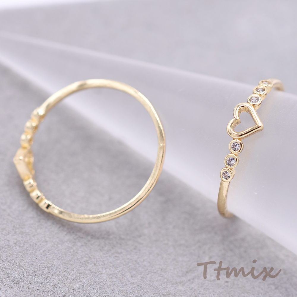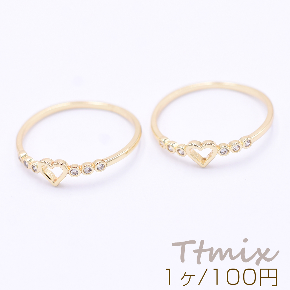 リング 指輪 デザインリング ハート ジルコニア付き 1×19mm ゴールド【1ヶ】