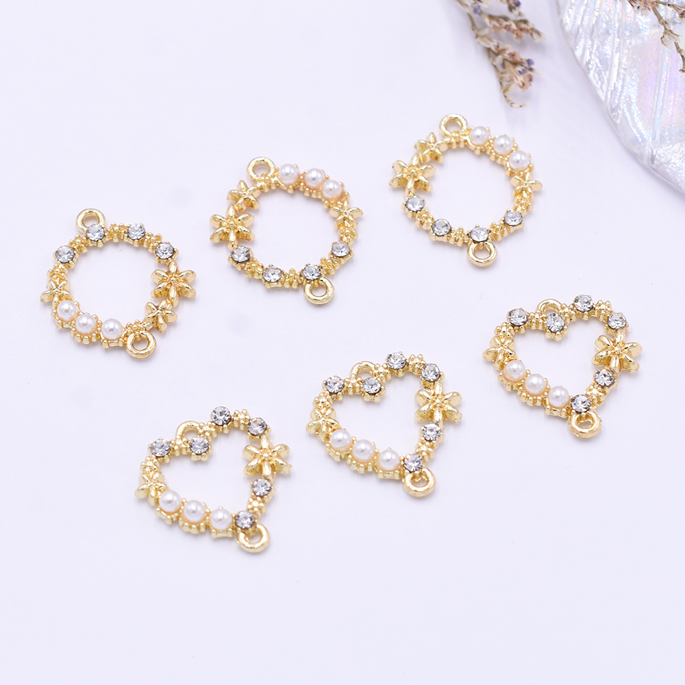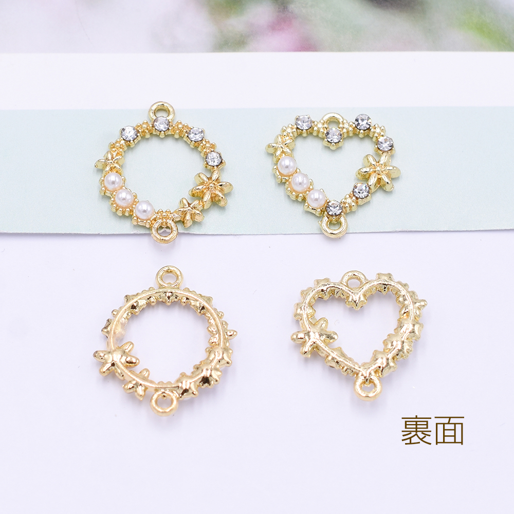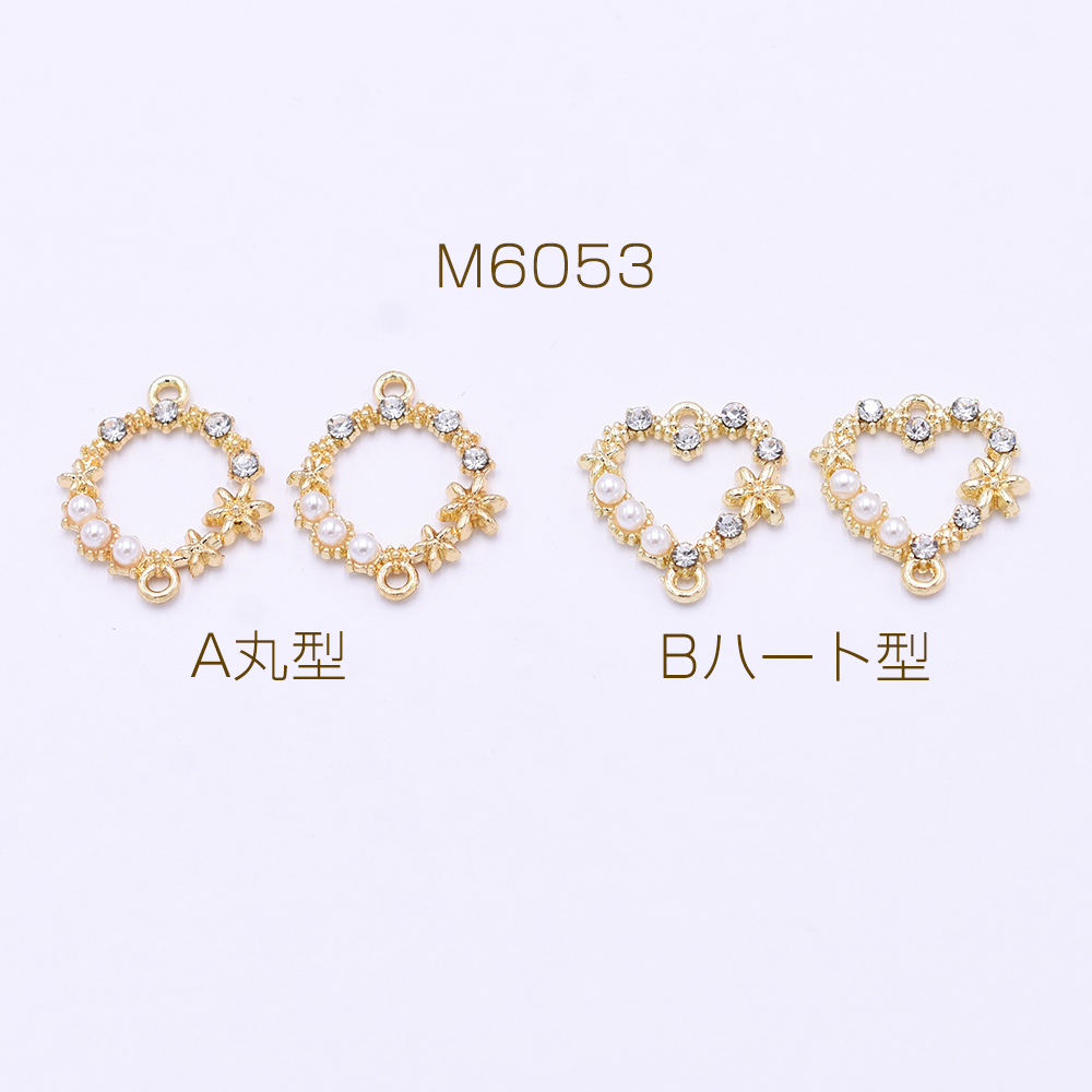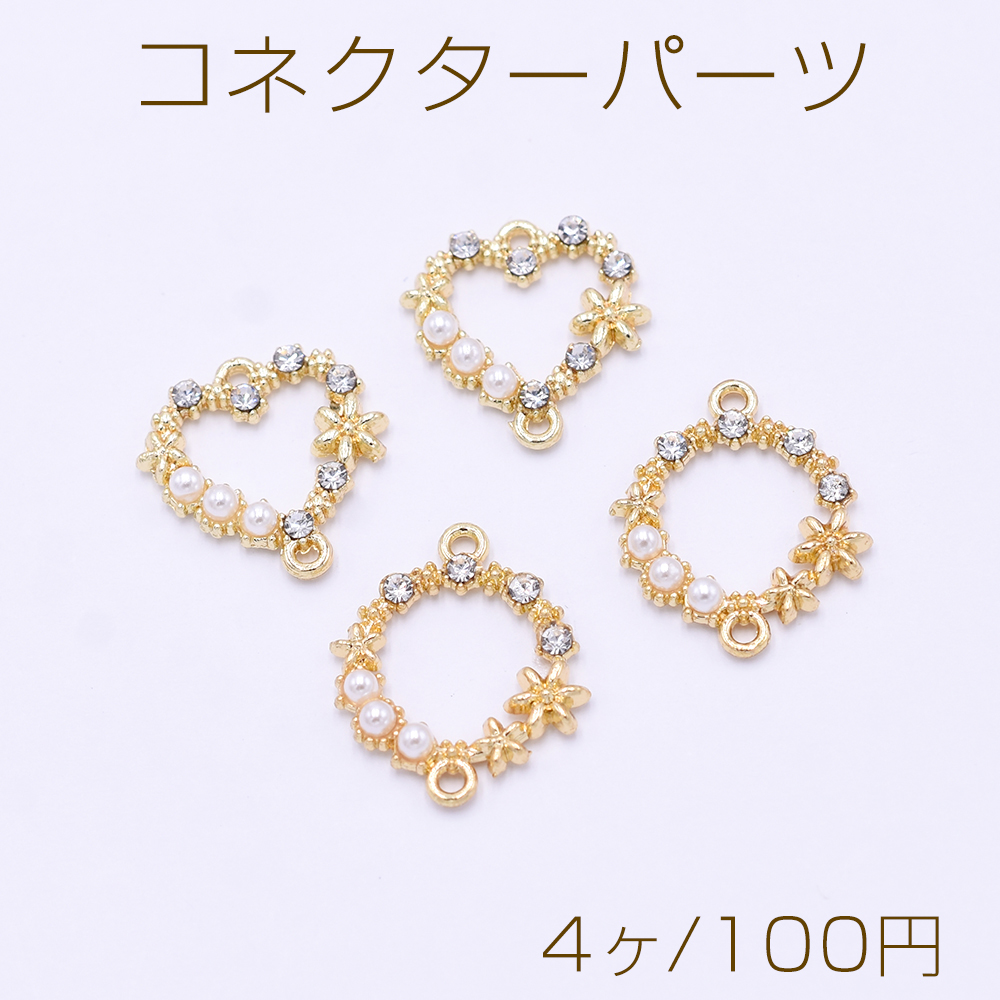 コネクターパーツ 花輪 パール&石付き 2カン ゴールド【4ヶ】