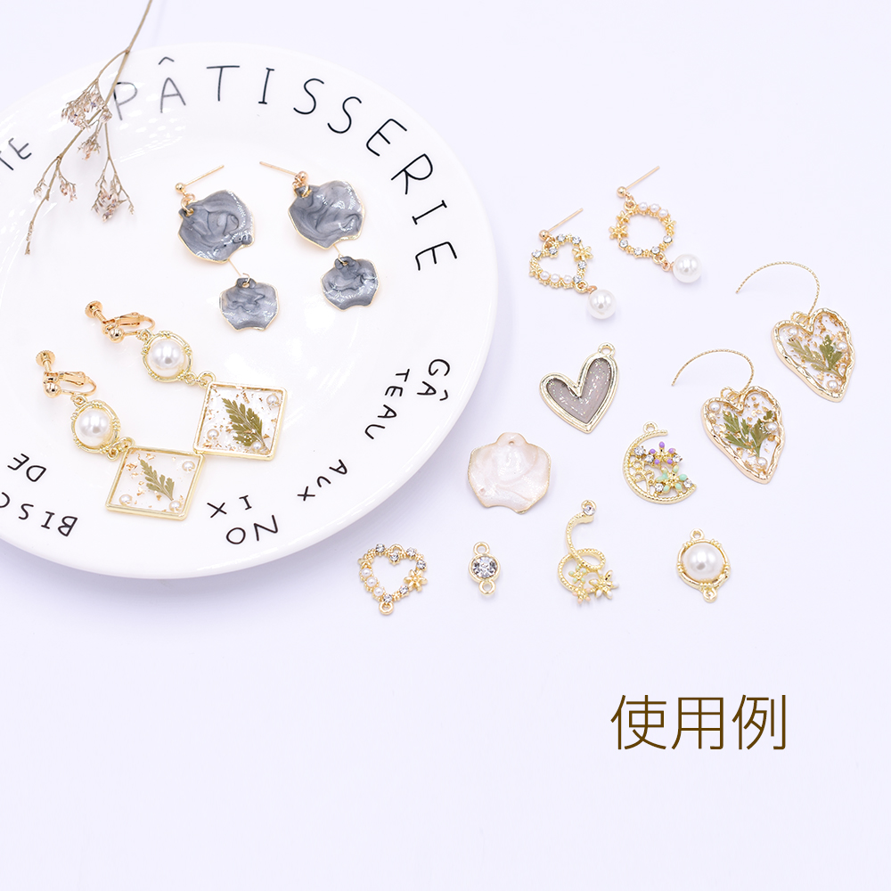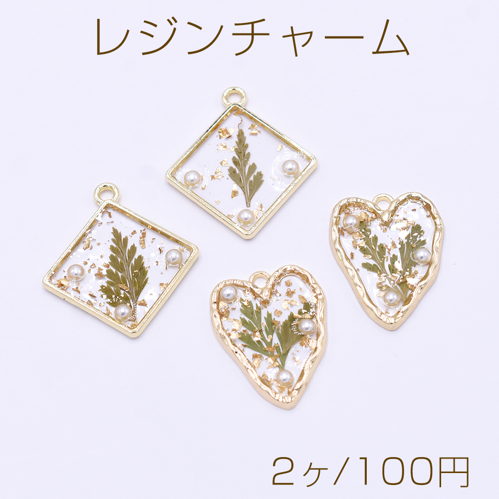 レジンチャーム パール&ドライリーフ&金箔入り 1カン ゴールド【2ヶ】