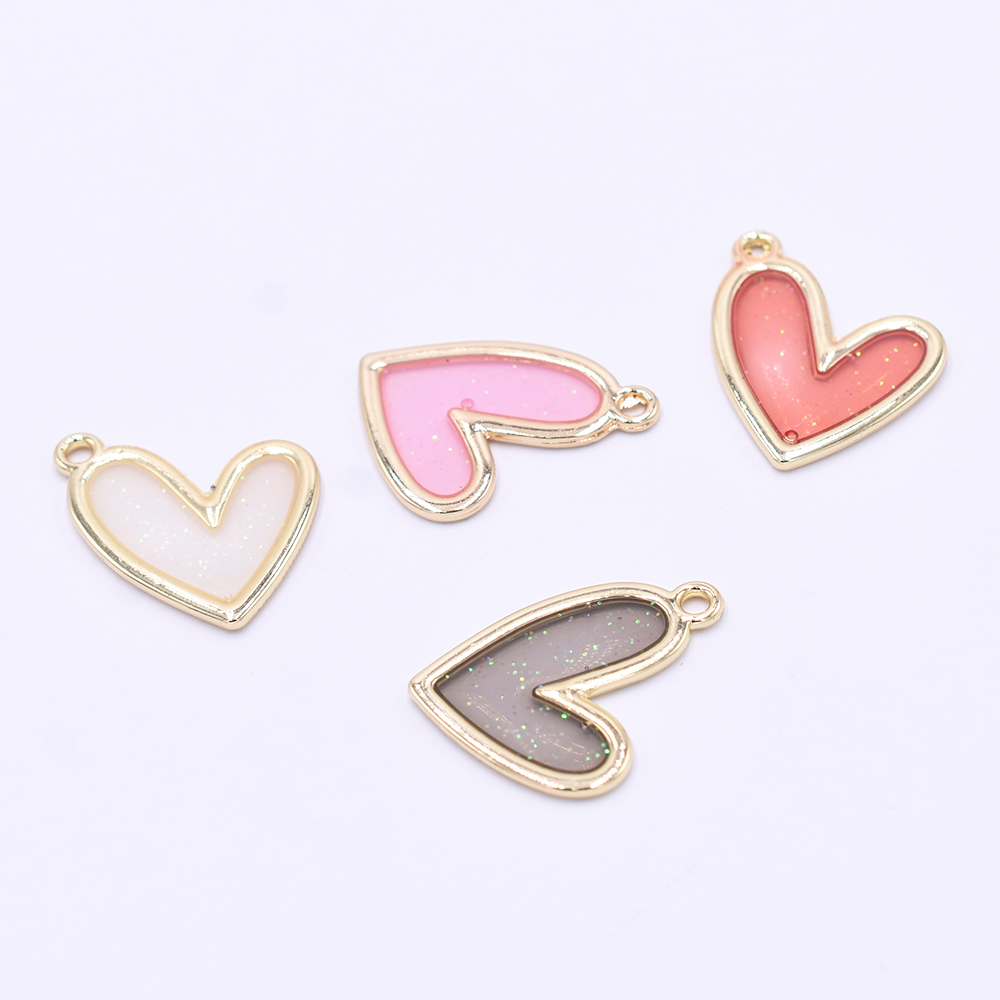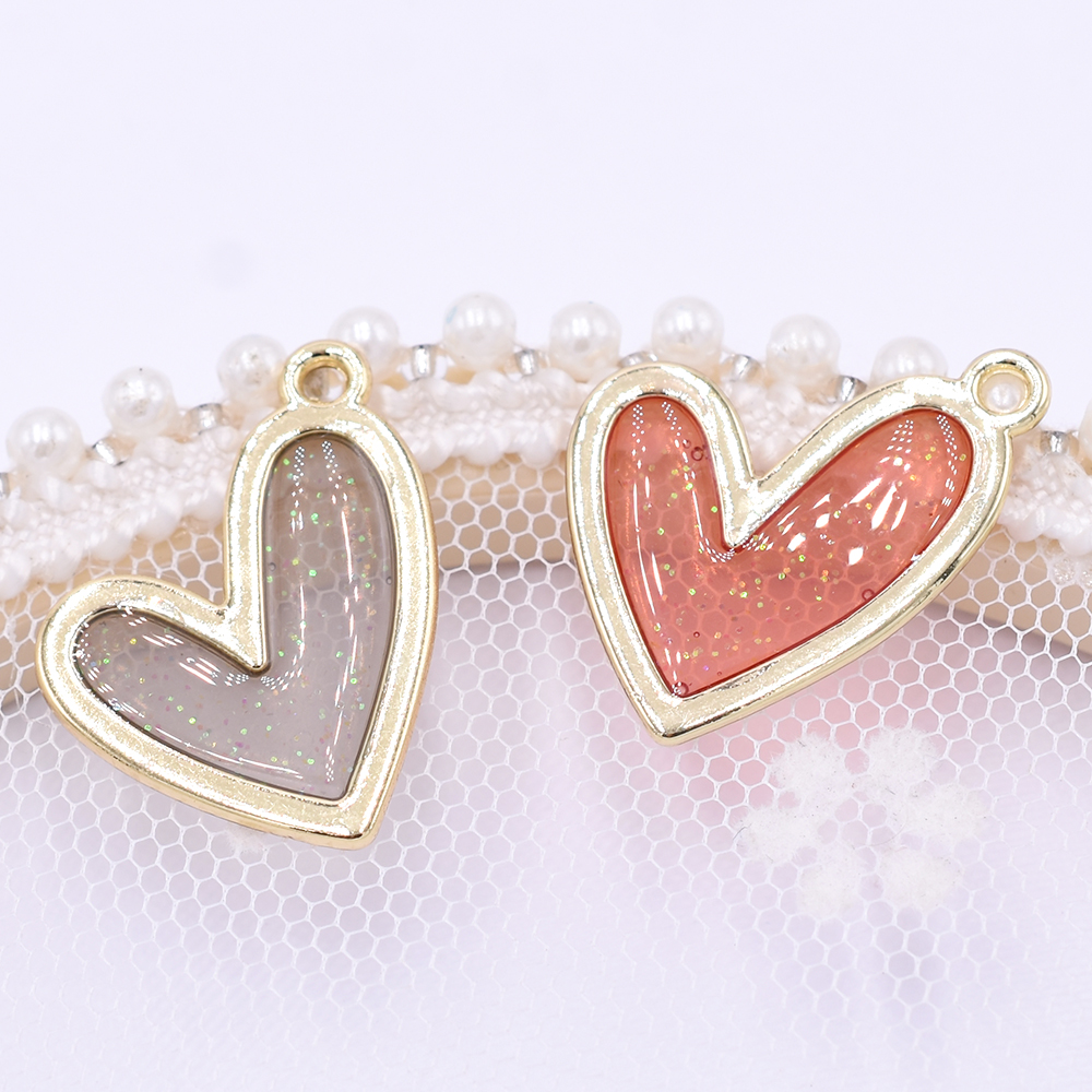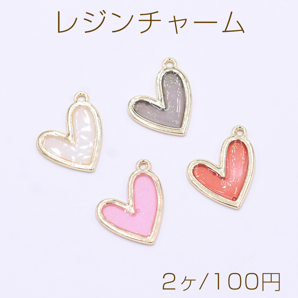 レジンチャーム ラメ入り ハート型 1カン 20×21mm ゴールド【2ヶ】