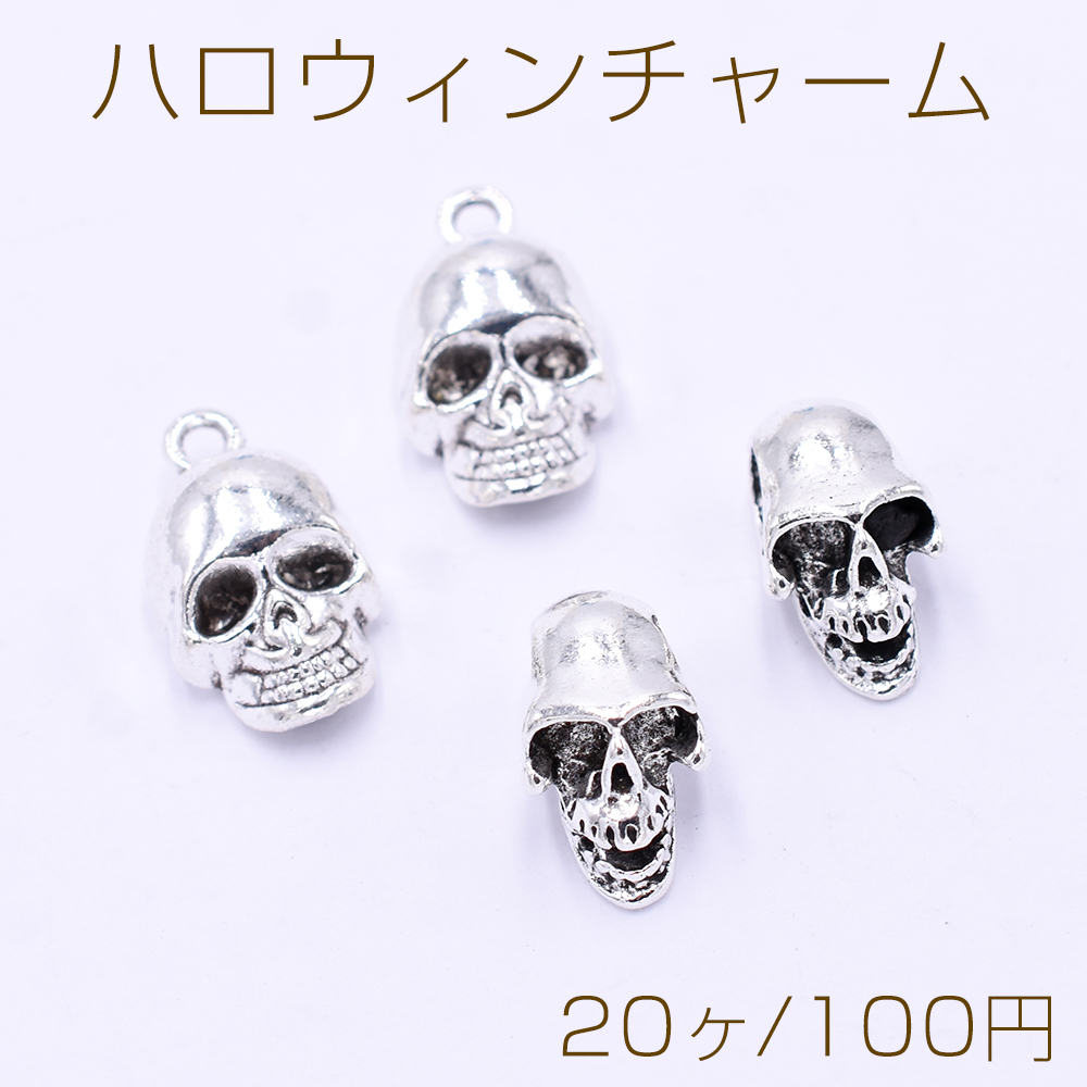 ハロウィンチャーム ドクロ スカル 全2種 アンティークシルバー【20ヶ】