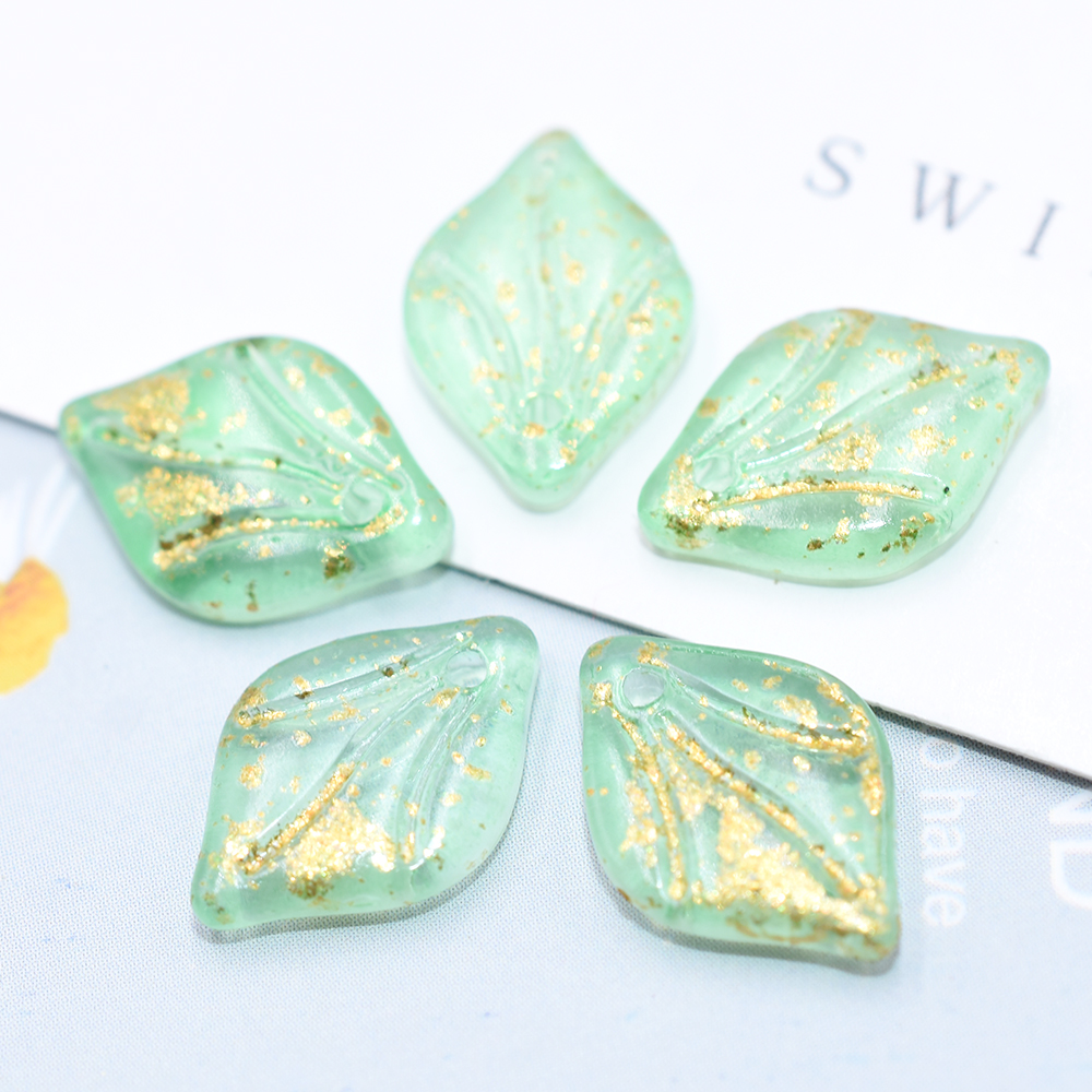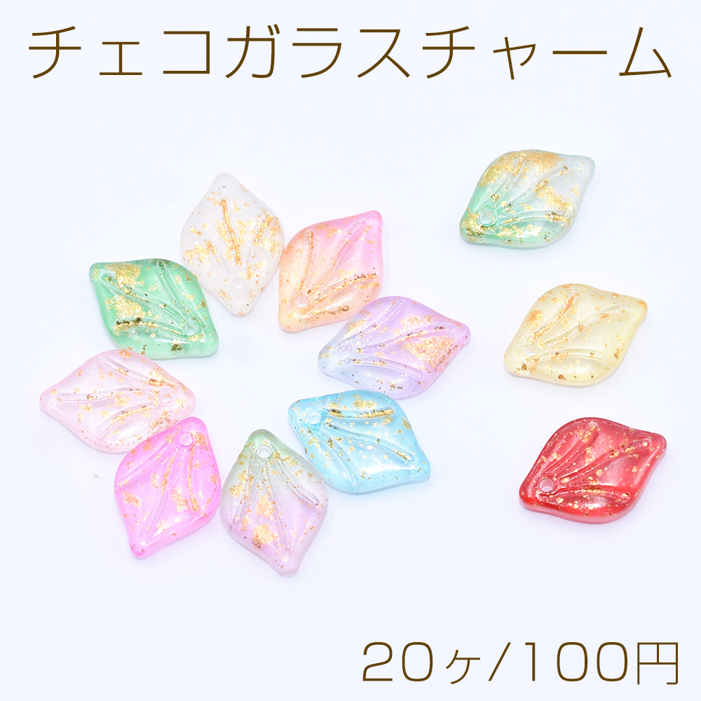 チェコガラスチャーム 金箔入り 花びら 1穴 9×14mm 20個入