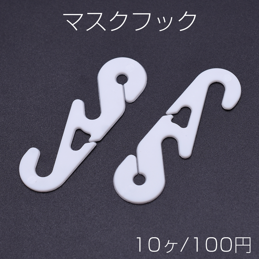 マスクフック マスク留め具 マスク紐用フック 15×52mm ホワイト【10ヶ】
