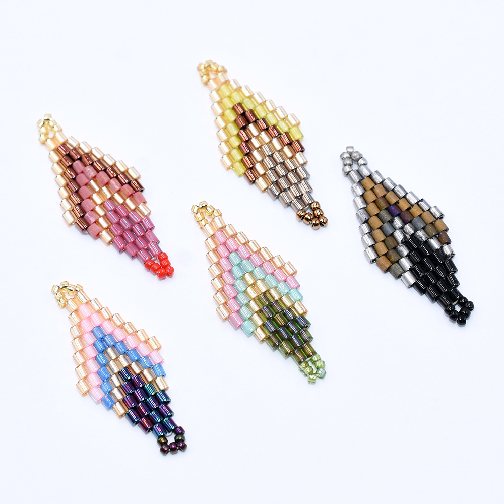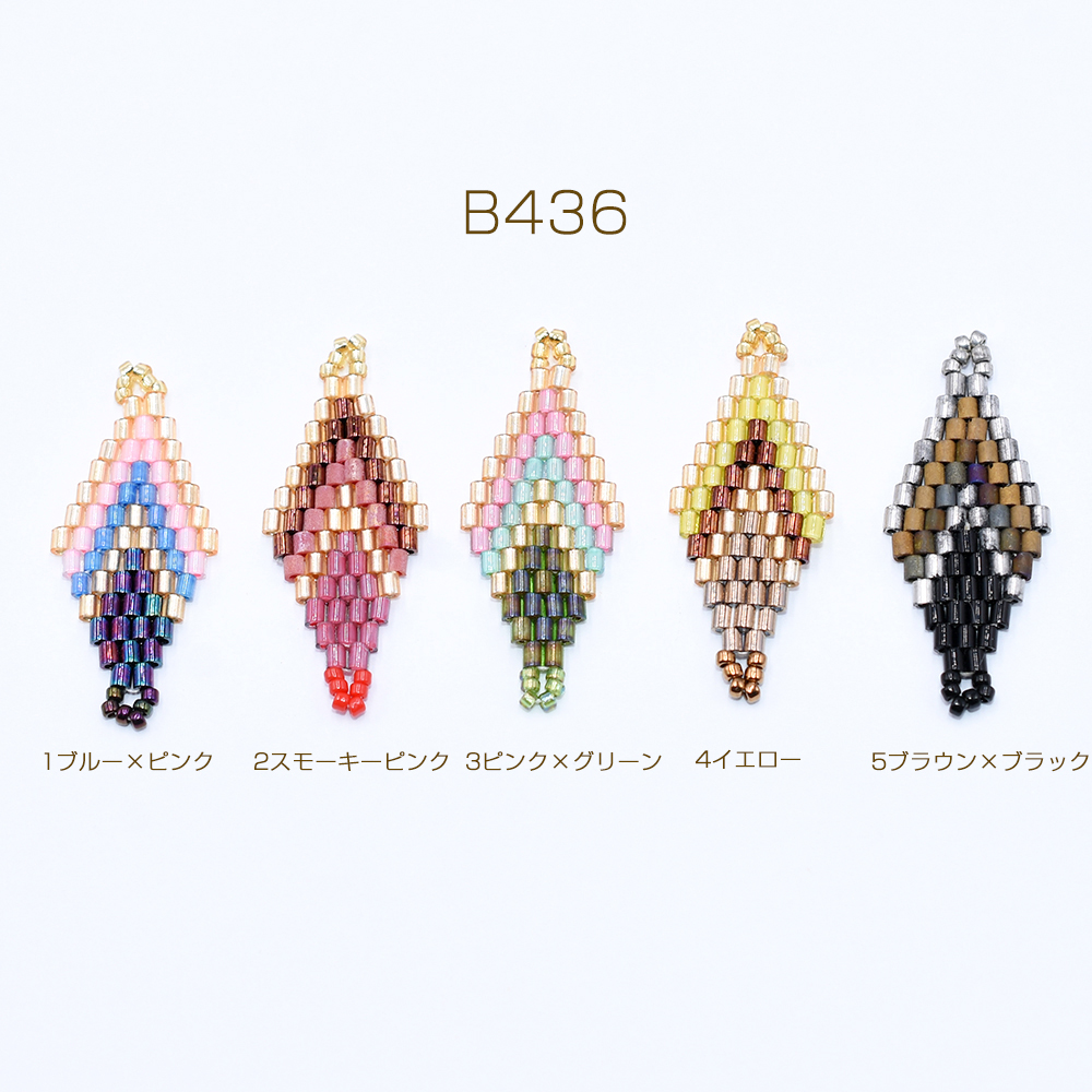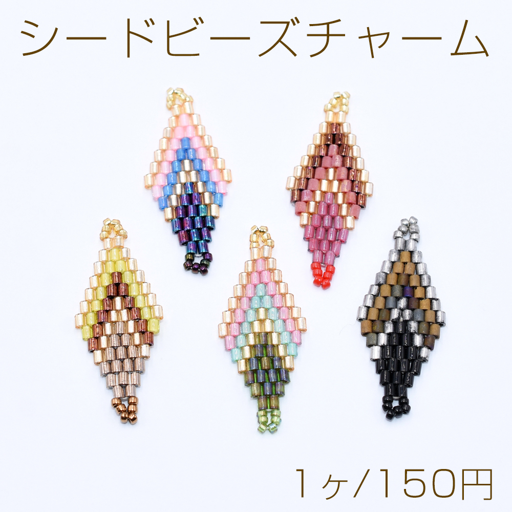 シードビーズチャーム 菱形 2カン 13×33mm【1ヶ】