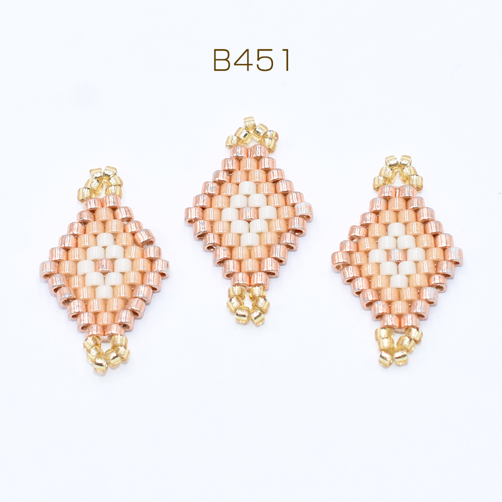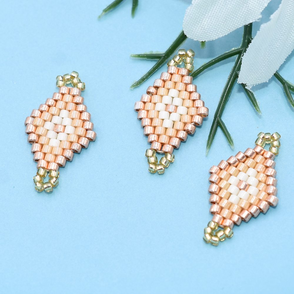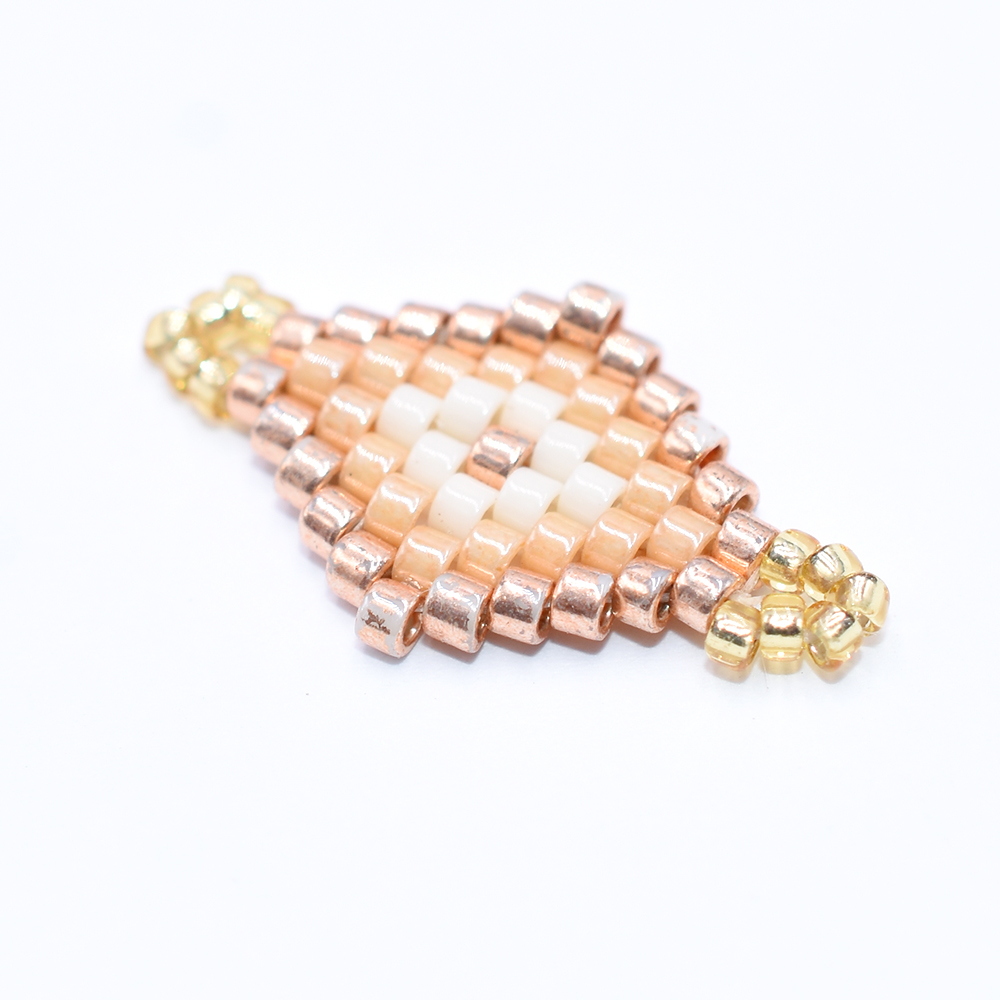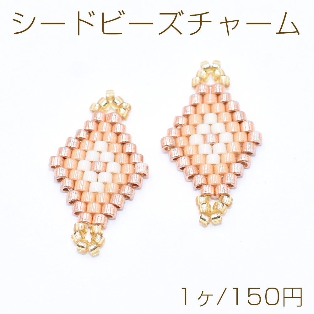 シードビーズチャーム 菱形 2カン 12×21mm シャンパンゴールド【1ヶ】
