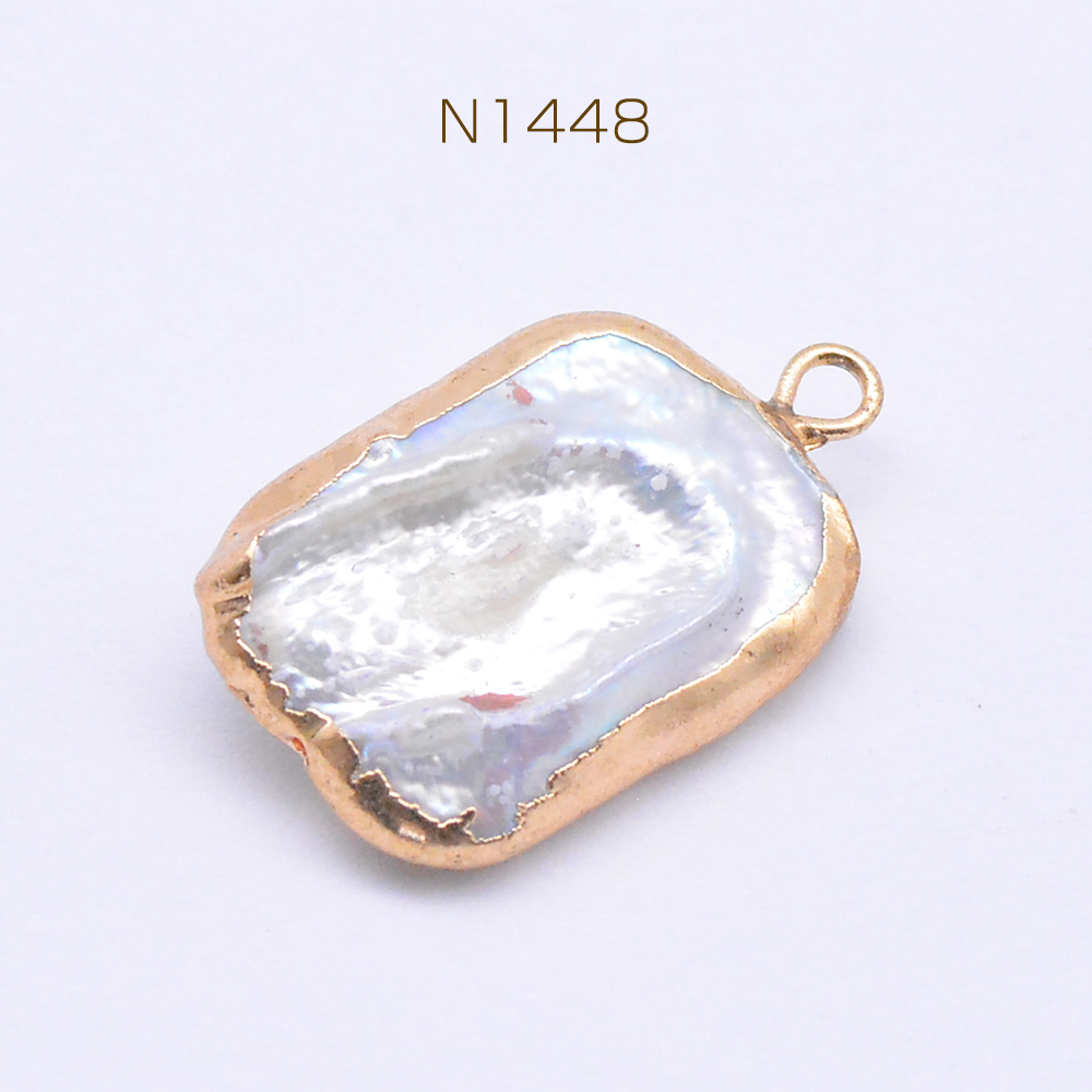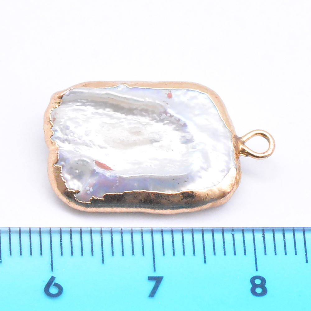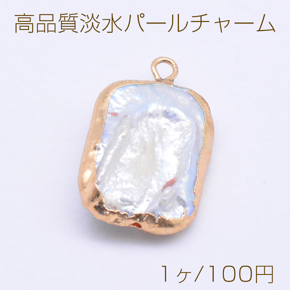 高品質淡水パールチャーム No.75 長方形 1カン ゴールド/ホワイト【1ヶ】