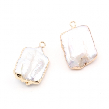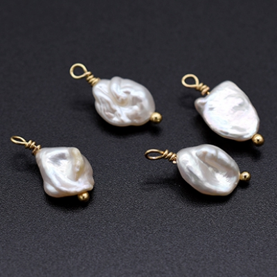 高品質淡水パールチャーム No.80 雫型 1カン ゴールド/グリーン【1ヶ】